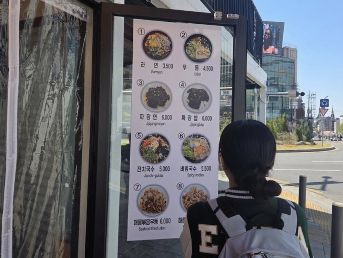 A university student views a menu outside a restaurant in Seodaemun district, Seoul, South Korea, on 7/4. Photo: Korea Times