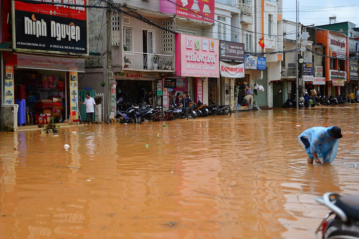 Earlier that day, heavy rain lasting over an hour caused severe flooding in several streets and residential areas in Da Lat. Water from upstream flooded Phan Dinh Phung street to a depth of over half a meter, sweeping away motorbikes, paralyzing traffic, and causing property damage. In Lam Vien ward, the residential area near Lu Gia stream was flooded; the surface of Le Van Tam street was severely damaged and peeled.