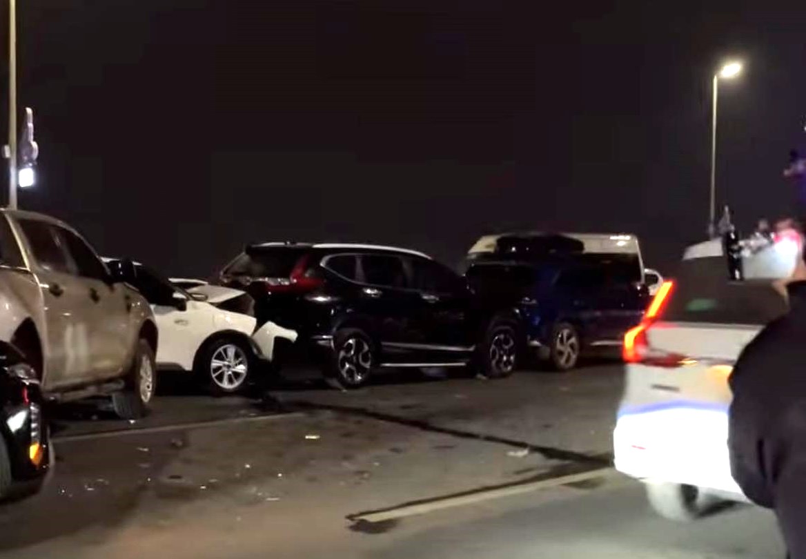 At least two cars sustained heavy damage to their front and rear, with airbags deployed. While there were no human casualties, the incident caused significant traffic congestion stretching from Nhat Tan Bridge to the start of Vo Chi Cong Street.