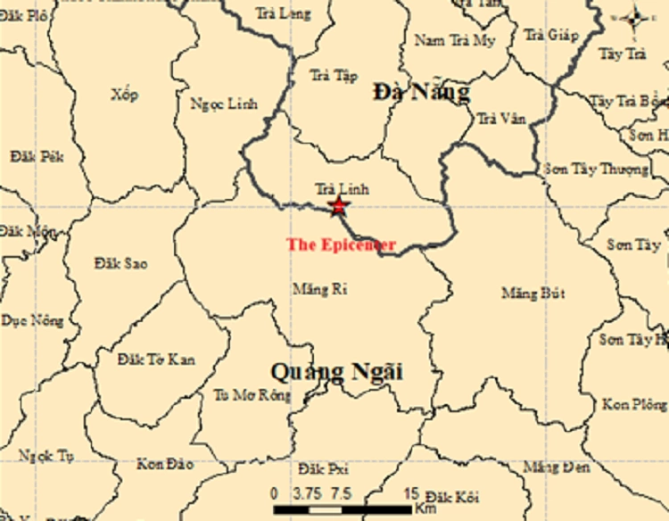 The Institute of Earth Sciences reported that tremors occurred from 5h to 8h in Tra Linh commune (Da Nang) and Mang But commune (Quang Ngai), two areas approximately 20 km apart. The day before, Mang But also experienced three earthquakes measuring 2,8-3,4 magnitude.