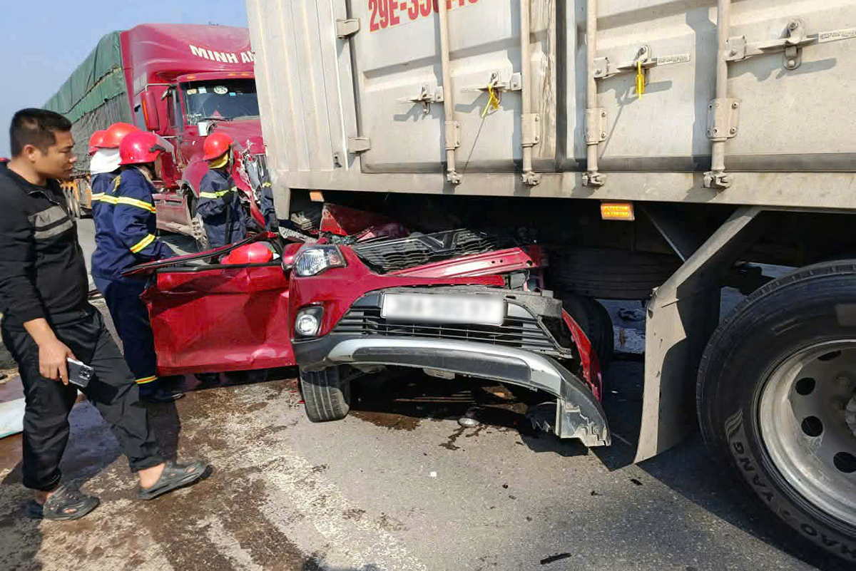 The cargo truck, unable to react, subsequently struck the rear of a passenger bus from Hung Yen, resulting in a four-vehicle pile-up.