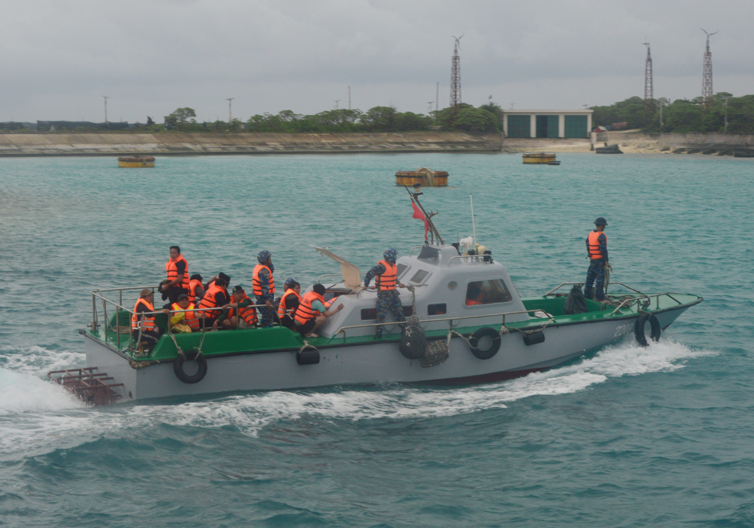 Navy personnel bringing fishermen to Song Tu Tay island, morning of 19/12. *Photo: Chau Vu* |