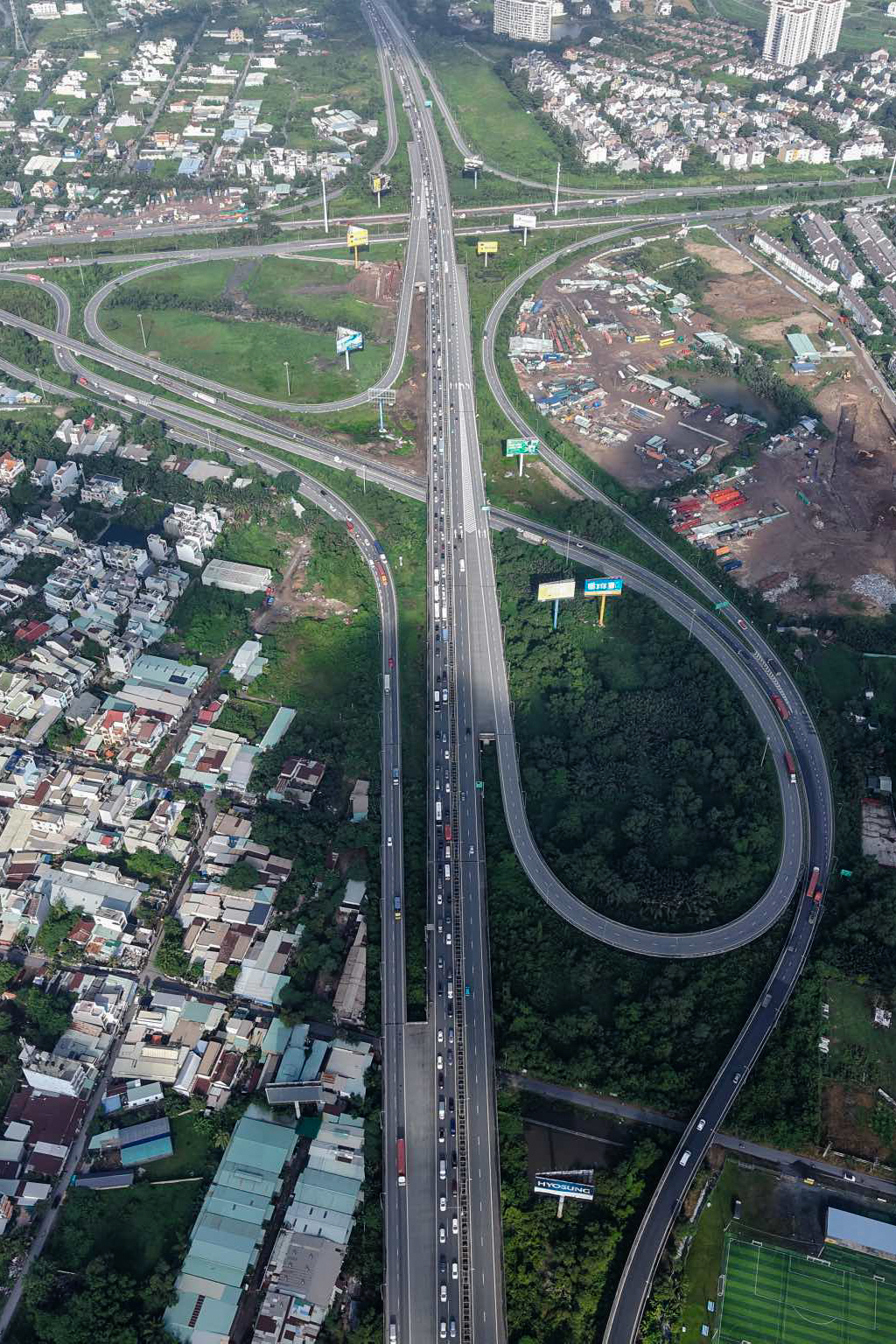 The entrance to the expressway is packed with vehicles heading towards Long Thanh (Dong Nai). Photo: Tran Linh
