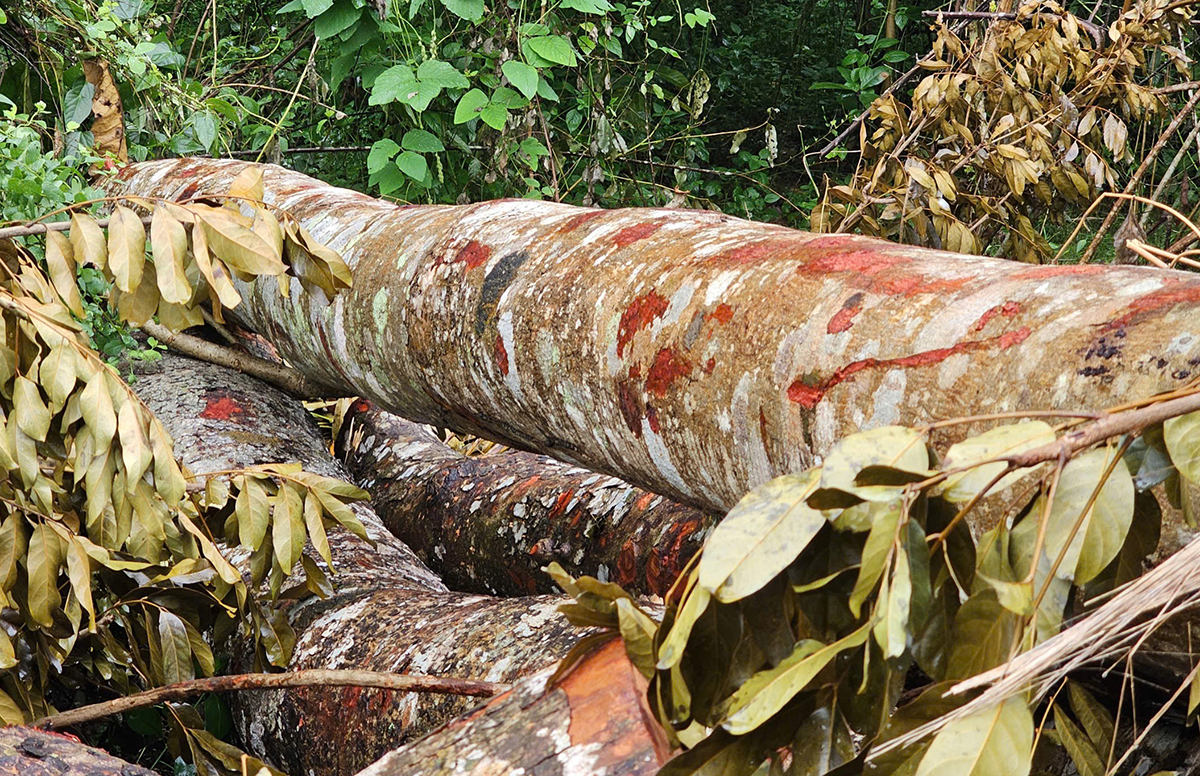 Many felled tree branches left at the scene in Ho Nuoc Ngot Cultural Park. Duc Nguyen