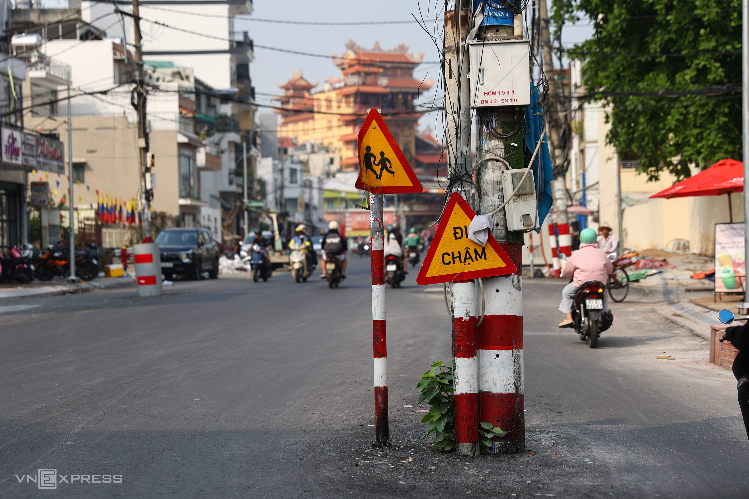 The most significantly affected section spans 600 meters, from Binh Hoa intersection to the junction with Phan Chu Trinh street, where approximately 50 power poles remain.