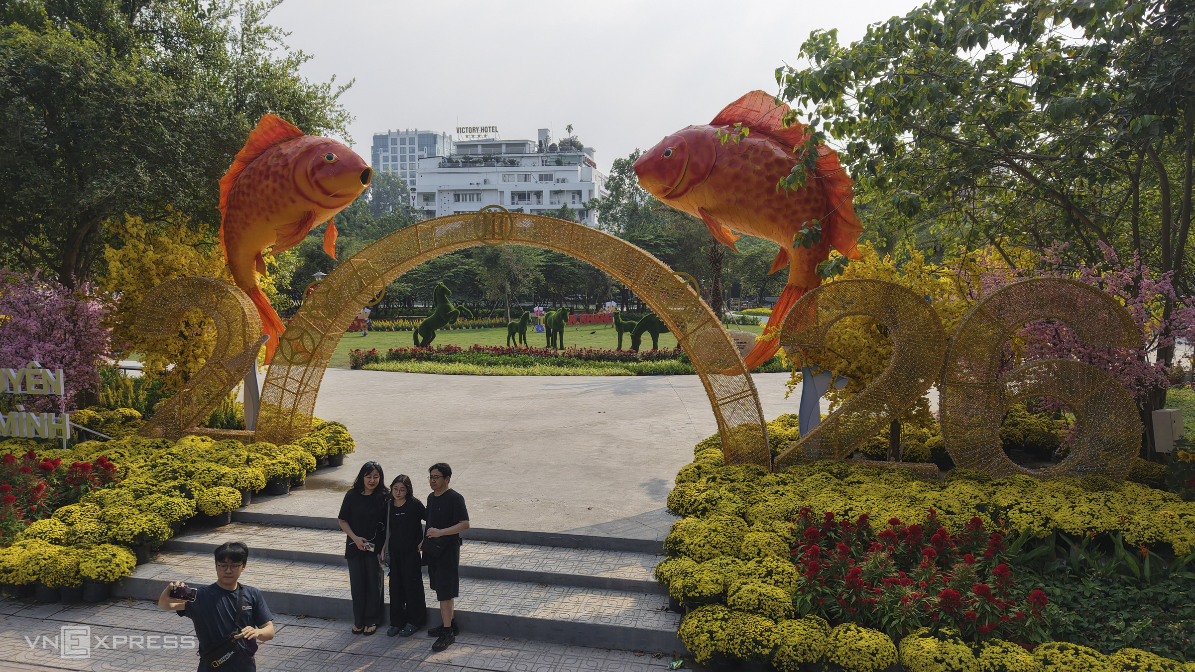 Visitors take check-in photos in front of the park at 8 Vo Van Tan.