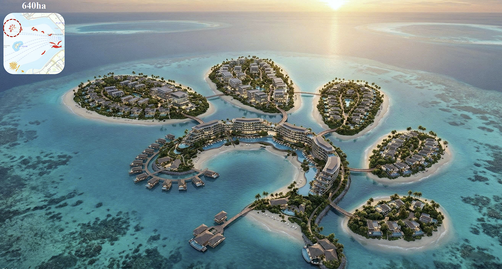 Each reclaimed area has a distinct development focus. Phu Quoc - Tho Chau is envisioned as an integrated international entertainment complex, fostering free trade, high-end resorts, entertainment parks, golf courses, and marine tourism. This aims to establish it as the southern international tourism gateway.
