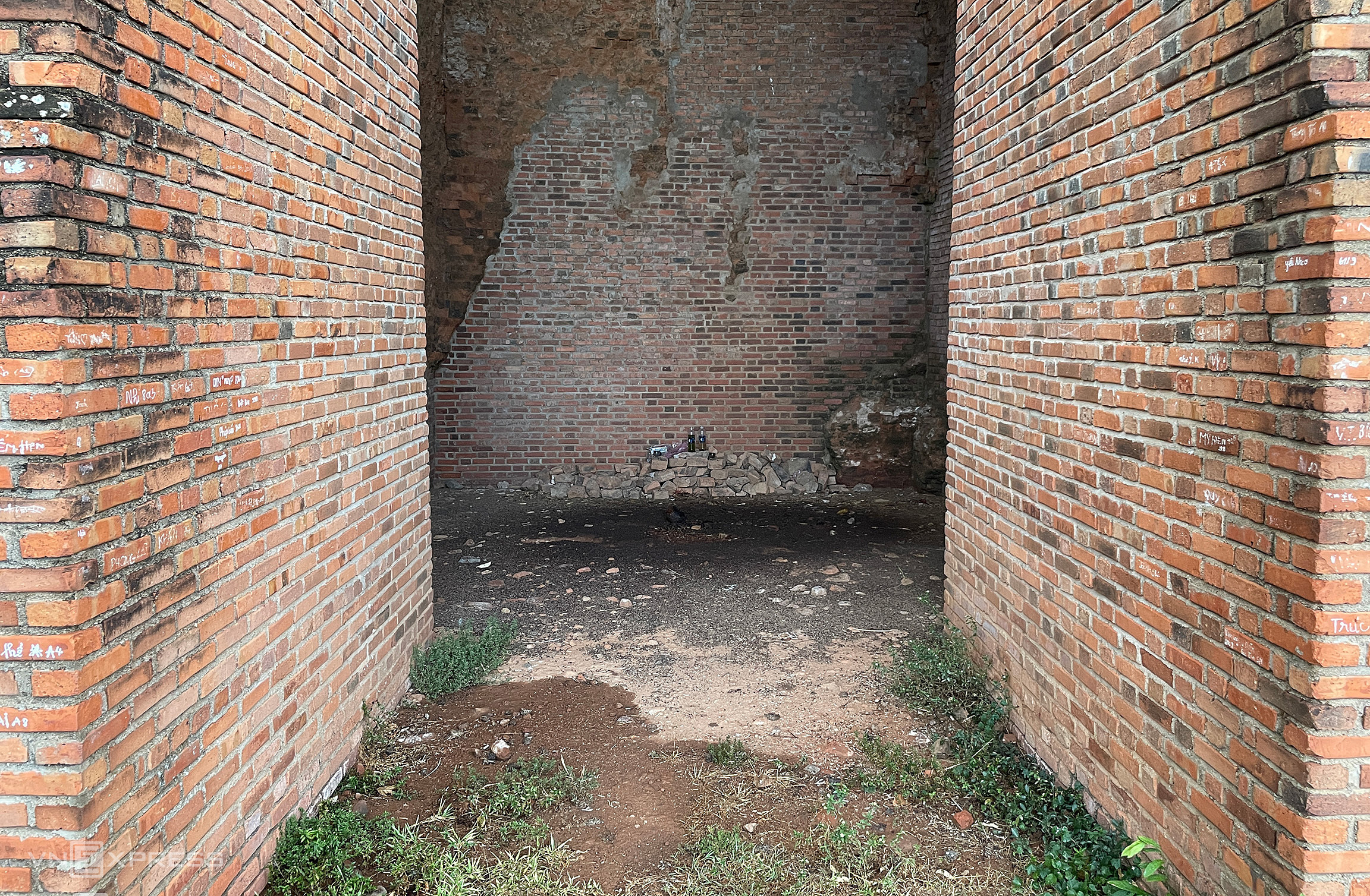 The worship altar inside Thu Thien Tower. The tower's body has a long crack. Phase 2 of the project will focus on restoring the tower's body. |