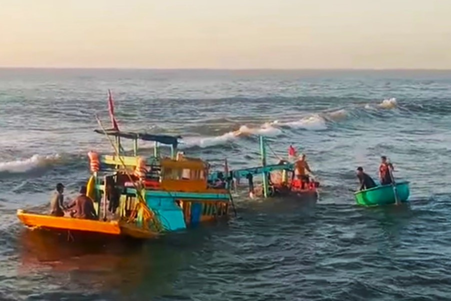 The captain and 14 crew members were promptly rescued by nearby fishermen using traditional basket boats and brought safely ashore. Following the incident, the Phuoc Loc Border Guard Post dispatched 10 officers and soldiers to coordinate with other local forces and equipment to assist in the salvage operation of the sunken boat.