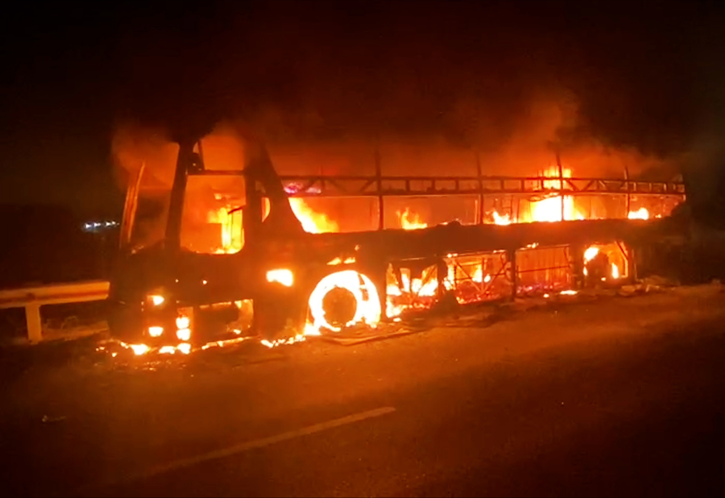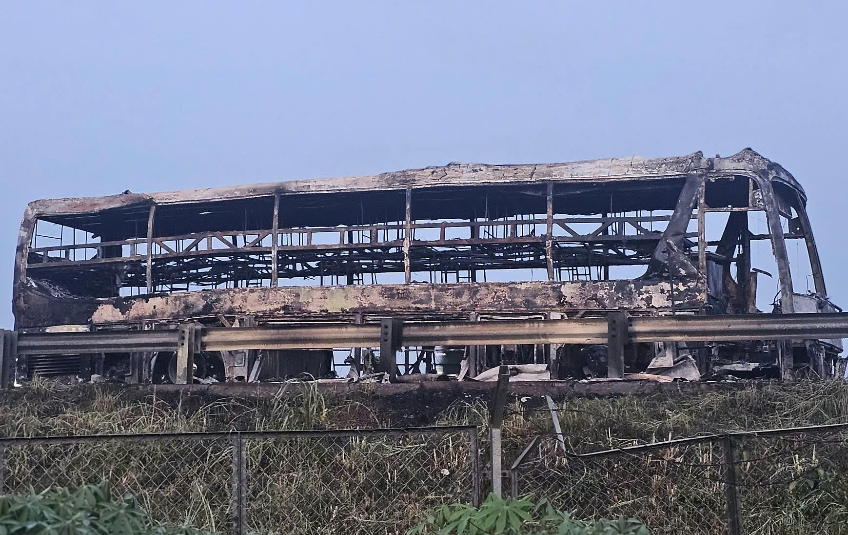 The blaze was brought under control, but the passenger bus was completely destroyed. *Nam An*