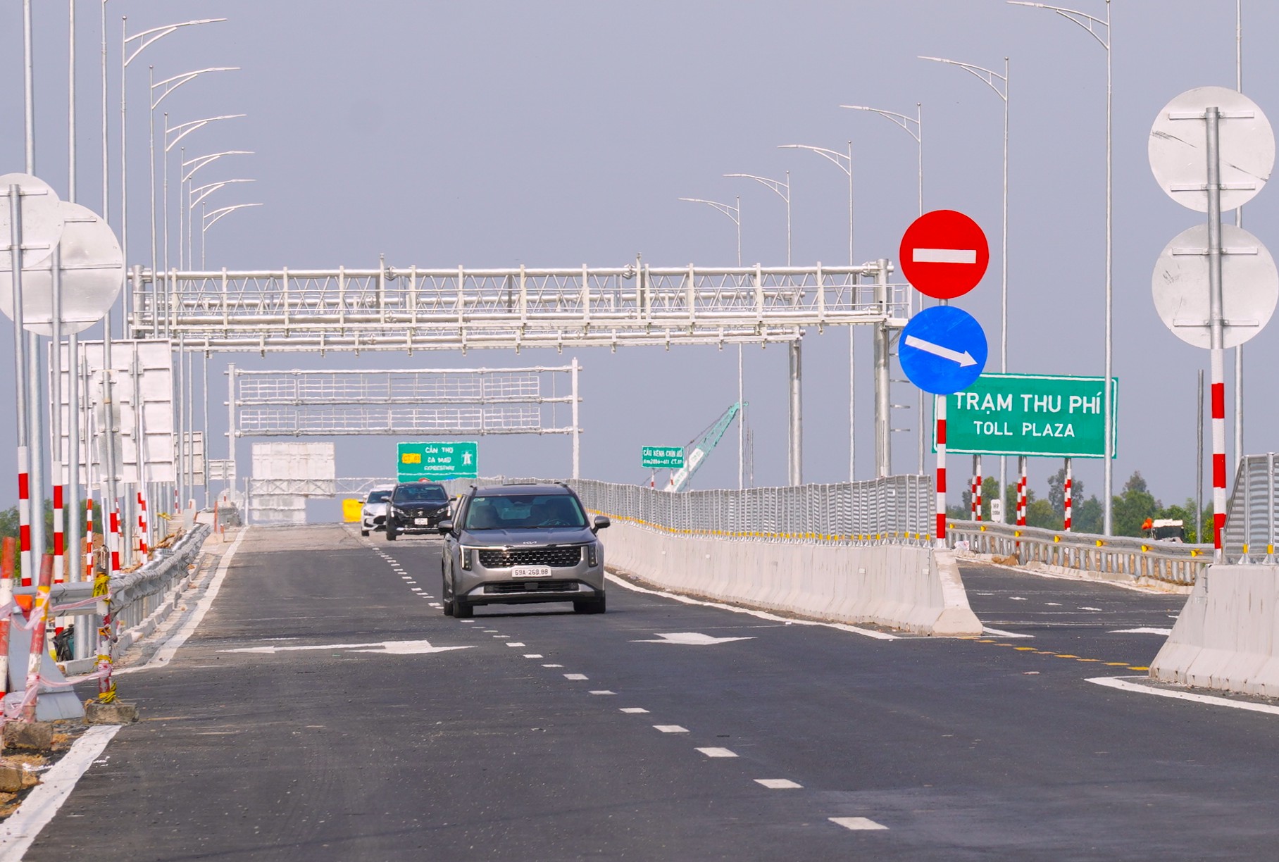 Vehicles are currently traveling toll-free on the Can Tho - Ca Mau expressway. Photo: Chuc Ly