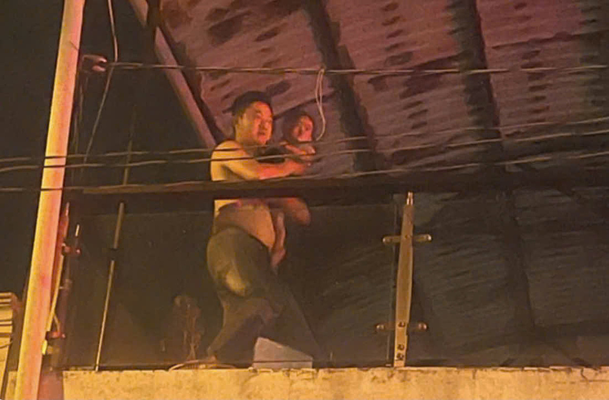 Captain Kiet carried the 13-month-old baby, trapped in the burning house, to the balcony to bring it to safety. Photo: Police provided