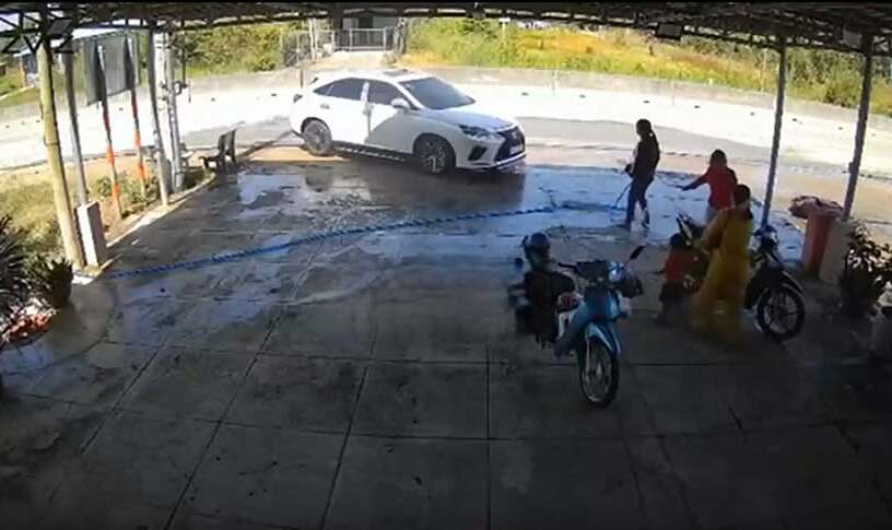 Without stopping, Thanh continued to reverse the car onto the road, hitting a canopy support pole, damaging the front and rear of the vehicle. The car then continued into the house, knocking over another motorcycle. Hanh and the girl fortunately avoided injury. The entire incident unfolded in nearly one minute.