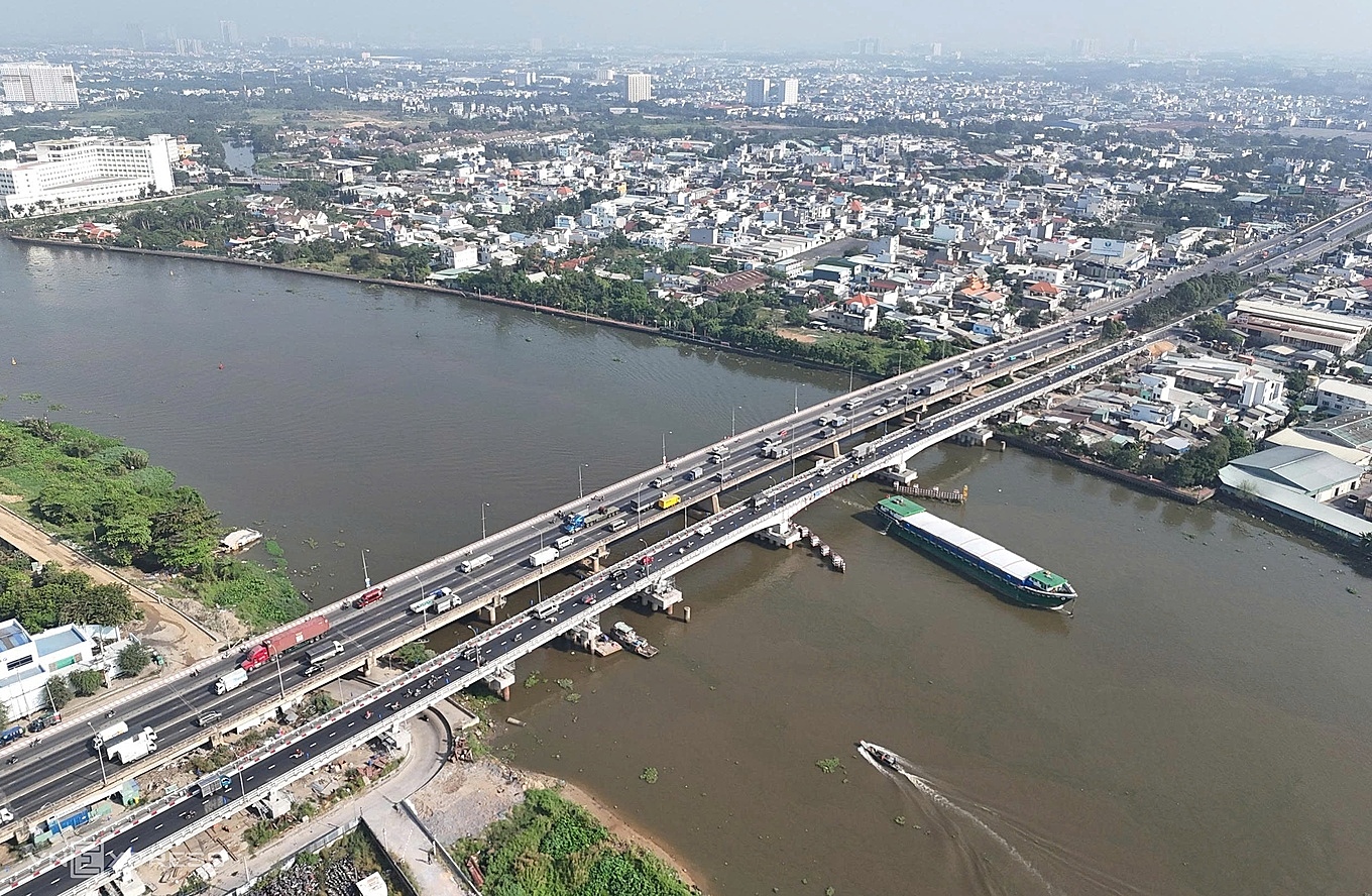 Binh Phuoc 1 bridge is nearly 480 m long and over 11 m wide, situated on National Highway 1, connecting Thu Duc to the former District 12. Following a ship collision incident in 2022, the bridge's load capacity was restricted, affecting both road and waterway traffic. Raising the vertical clearance helps restore operations, facilitating passage for large vessels.
