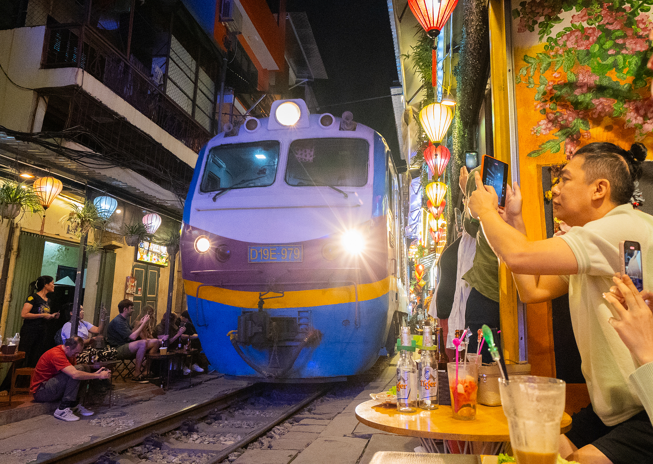 The train street cafe is always crowded with tourists watching trains pass by. *Photo: Hoang Giang* |