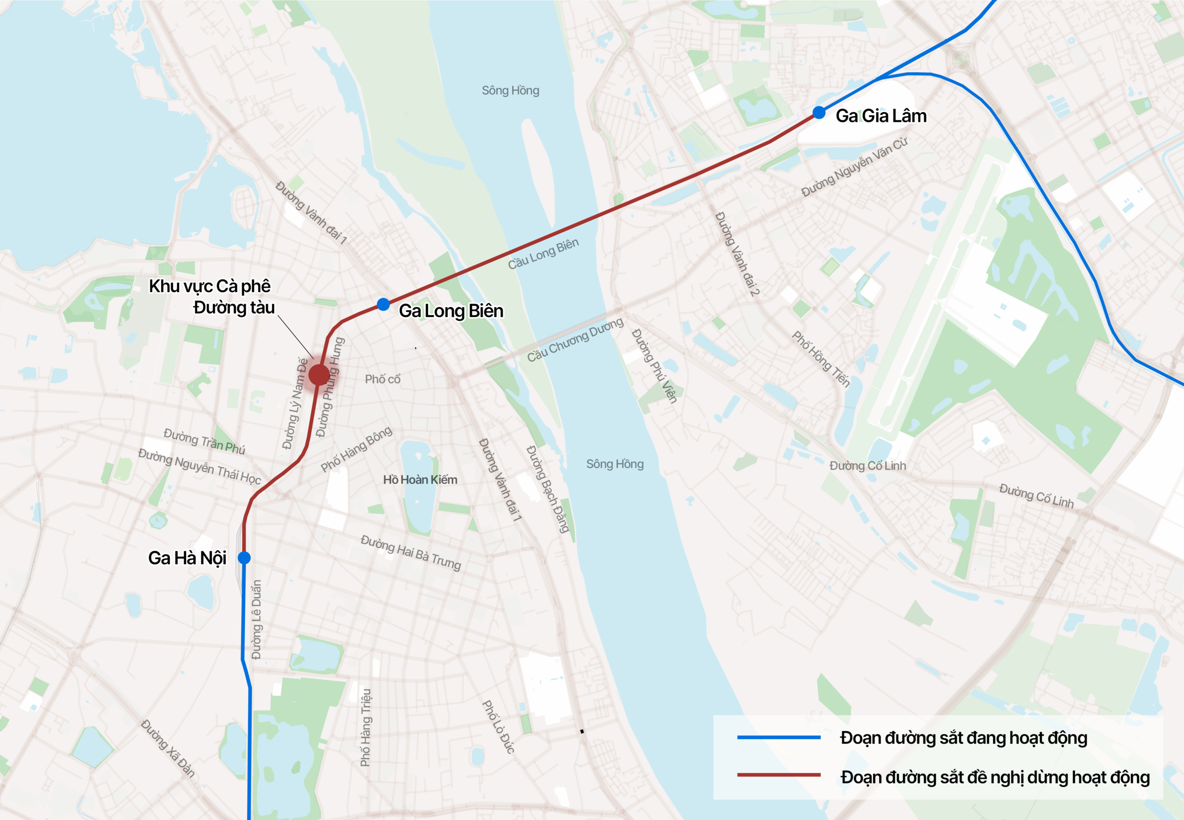 The railway line proposed for cessation of operations in central Hanoi. *Graphic: Tam Thao* |