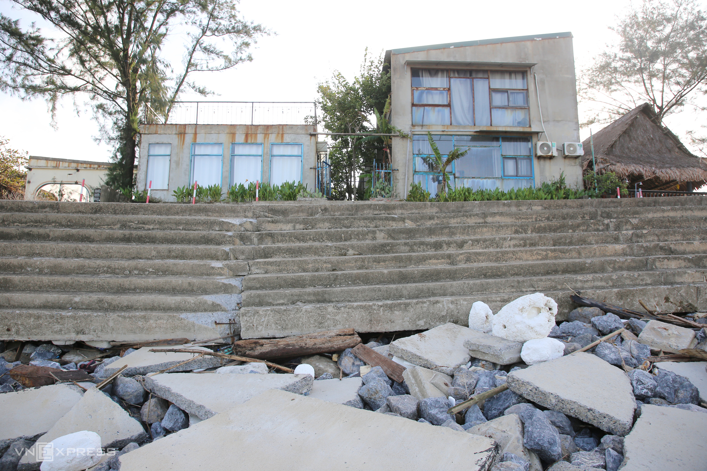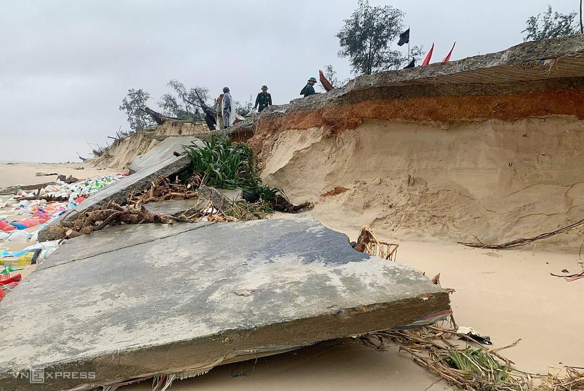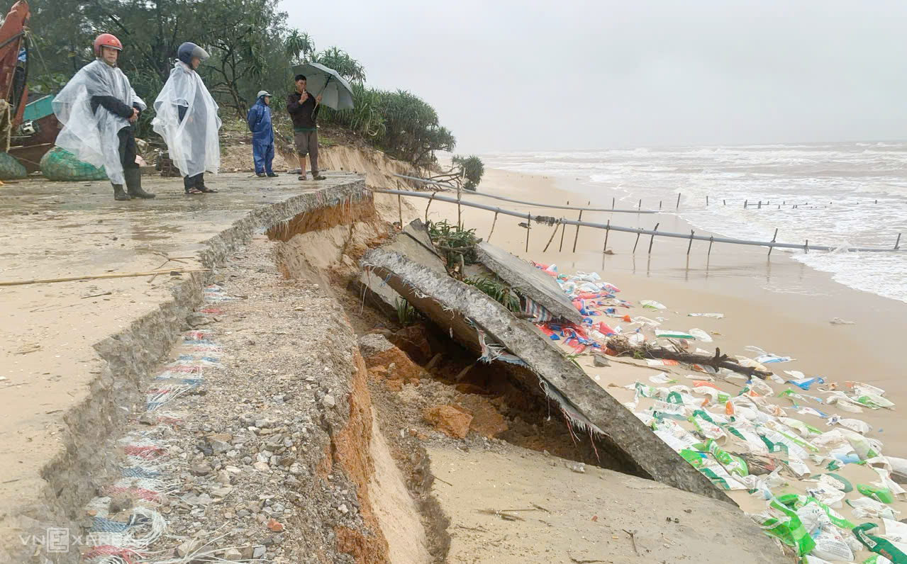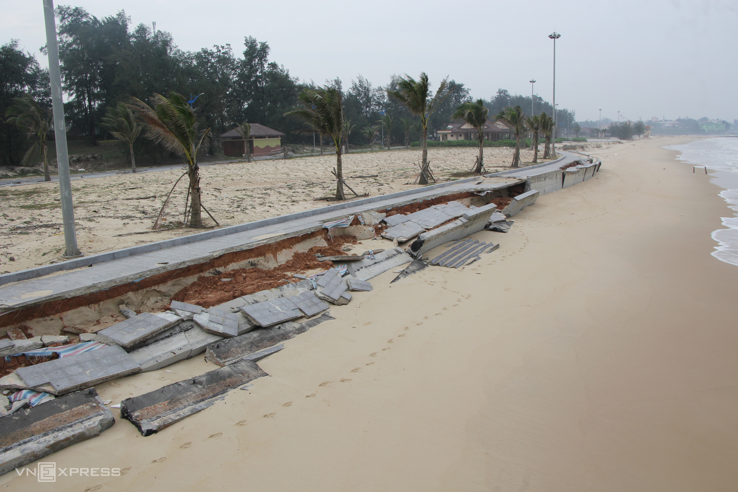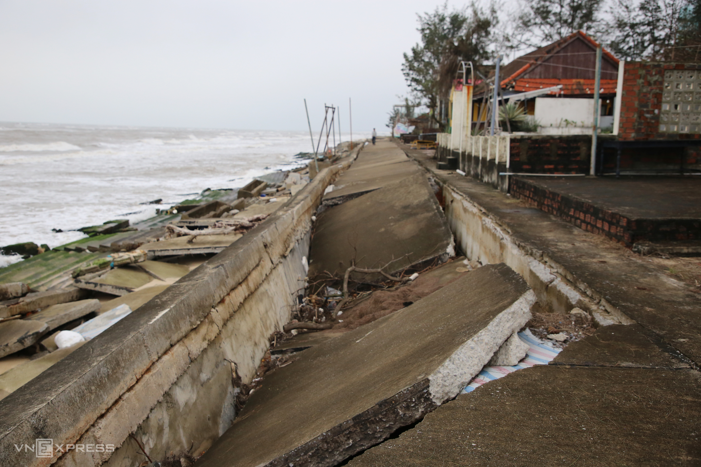 Tran Thi Thanh Van, owner of a coastal restaurant, stated that the seawall area was previously used for outdoor seating, offering guests sea views. Now, the damaged dike has driven away customers, forcing many establishments to close. Dong Hoi ward has proposed that the Provincial People's Committee and the Department of Finance approve project settlement and allocate emergency funds for repairs and the construction of offshore submerged breakwaters.