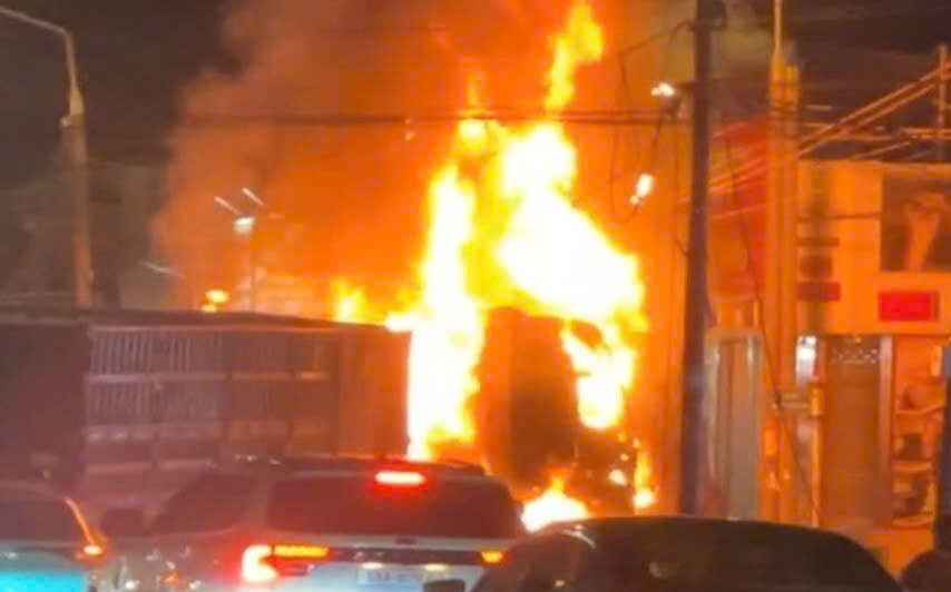 About 15 minutes later, the fire intensified, engulfing the front of the truck. Firefighters deployed several specialized vehicles to the scene to extinguish the blaze.