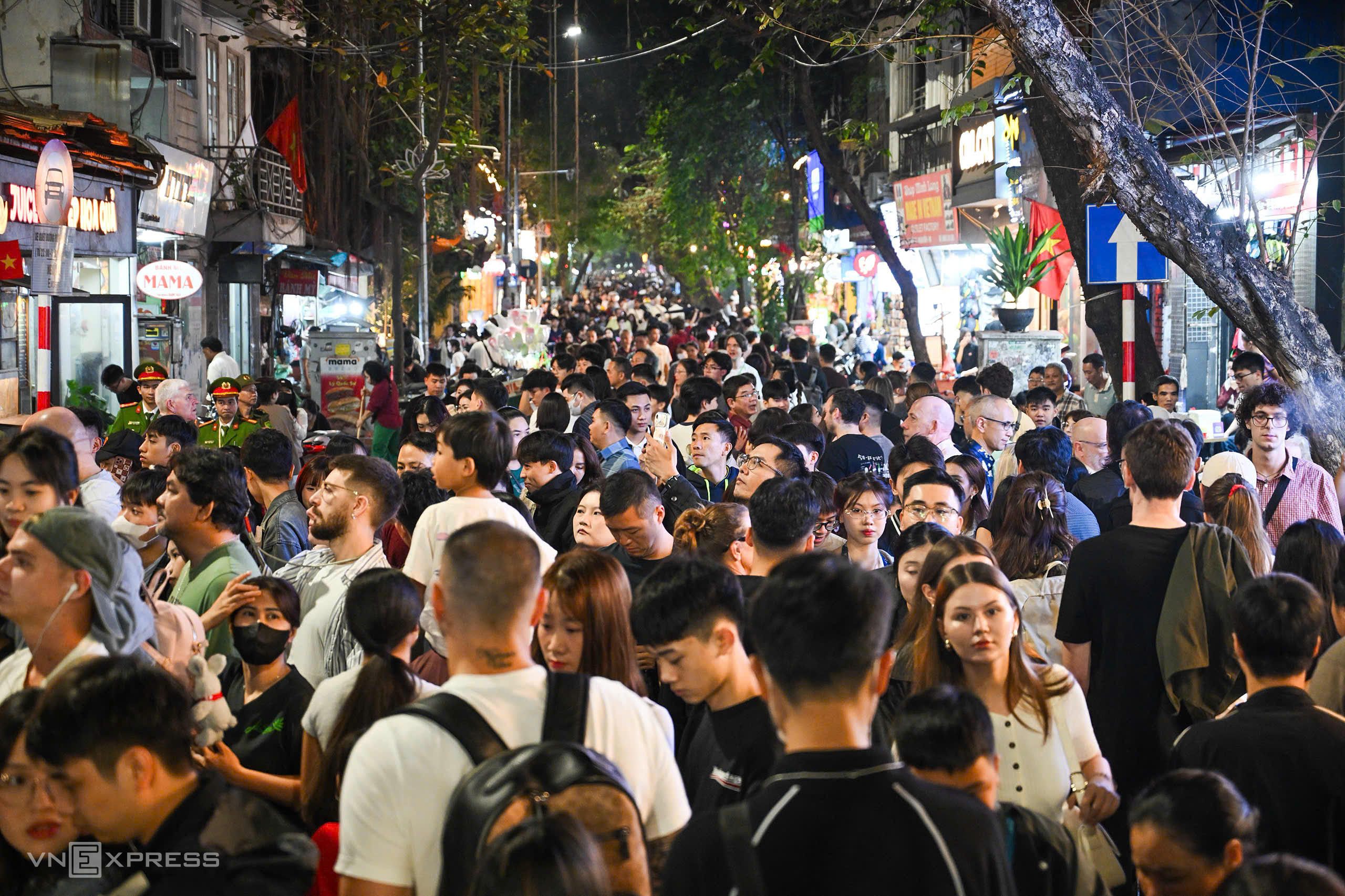 Ly Quoc Su street, leading to St. Joseph's Cathedral, was packed with people. |
