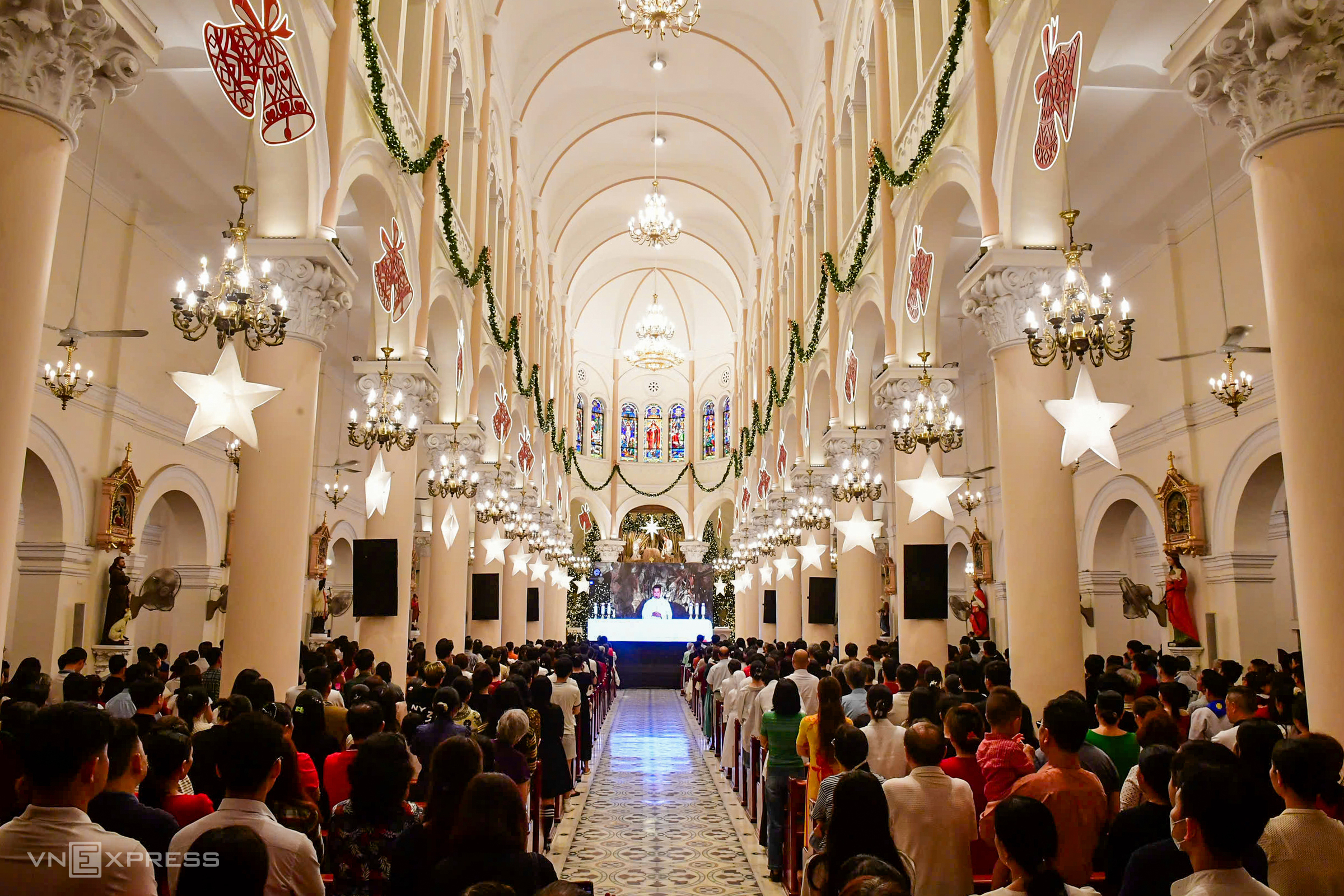 Hundreds of parishioners gathered at Tan Dinh Church to celebrate Christmas.