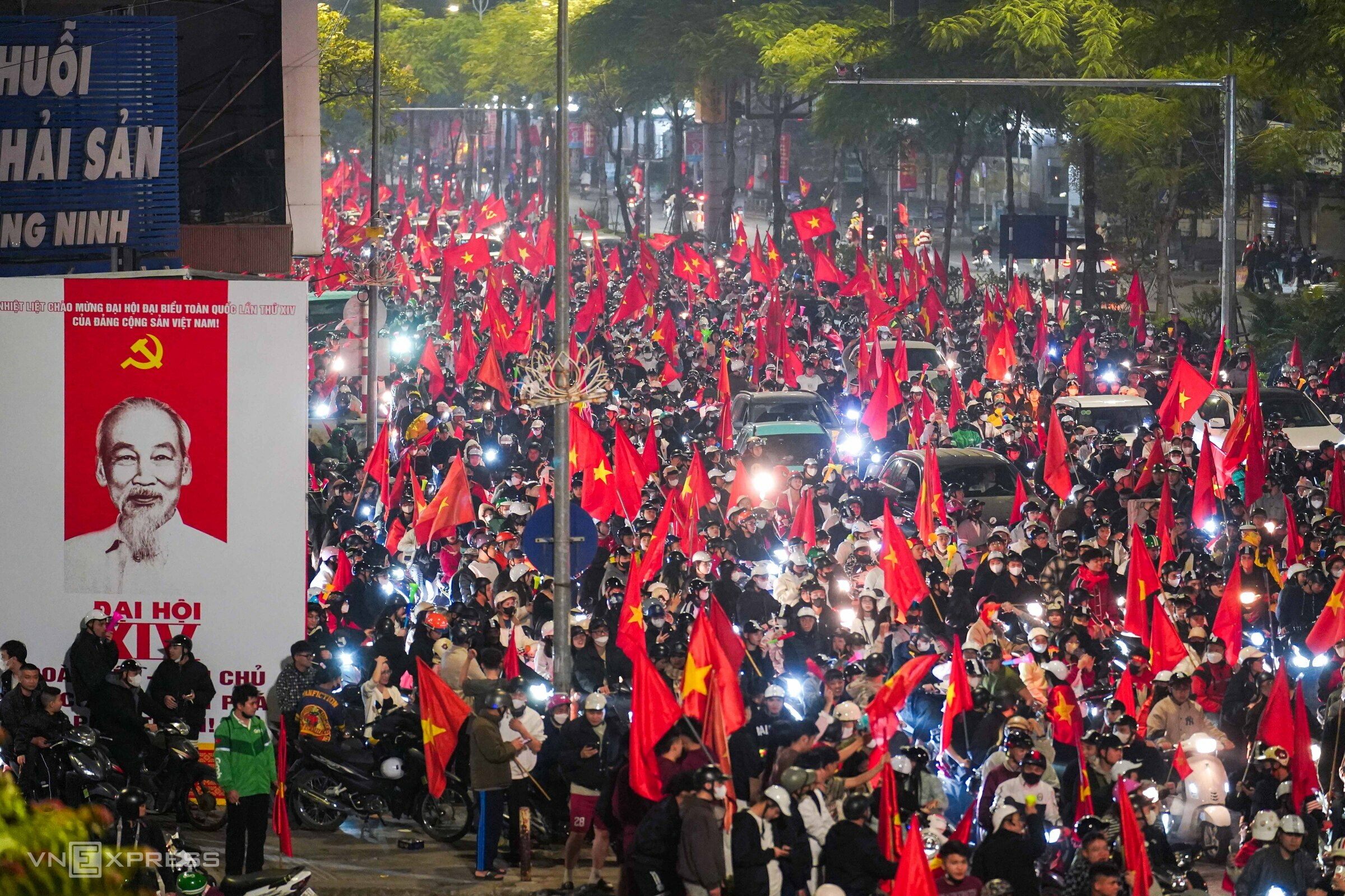 At 2h10, thousands of people still lined the street leading to Kim Lien tunnel, cheering and celebrating the national team's 3-2 victory after 120 thrilling minutes in the U23 Asian Cup quarterfinals against UAE.