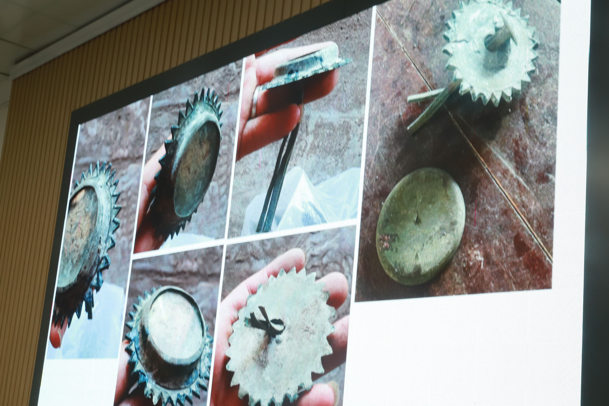 According to Mr. Ho Huu Hanh, Director of Hue Monuments Restoration Joint Stock Company, during the dismantling process, his unit collected several metal artifacts suspected to be decorative constellation details. Based on documents and research on "nhi thap bat tu" (the twenty-eight mansions in traditional East Asian astronomy), the unit drafted a plan to arrange 28 constellations on the Minh Khiem Duong ceiling and intends to adjust the construction. Similar patterns previously found on the Ngo Mon bell and the Kham Thien Giam wall served as a basis for comparison.