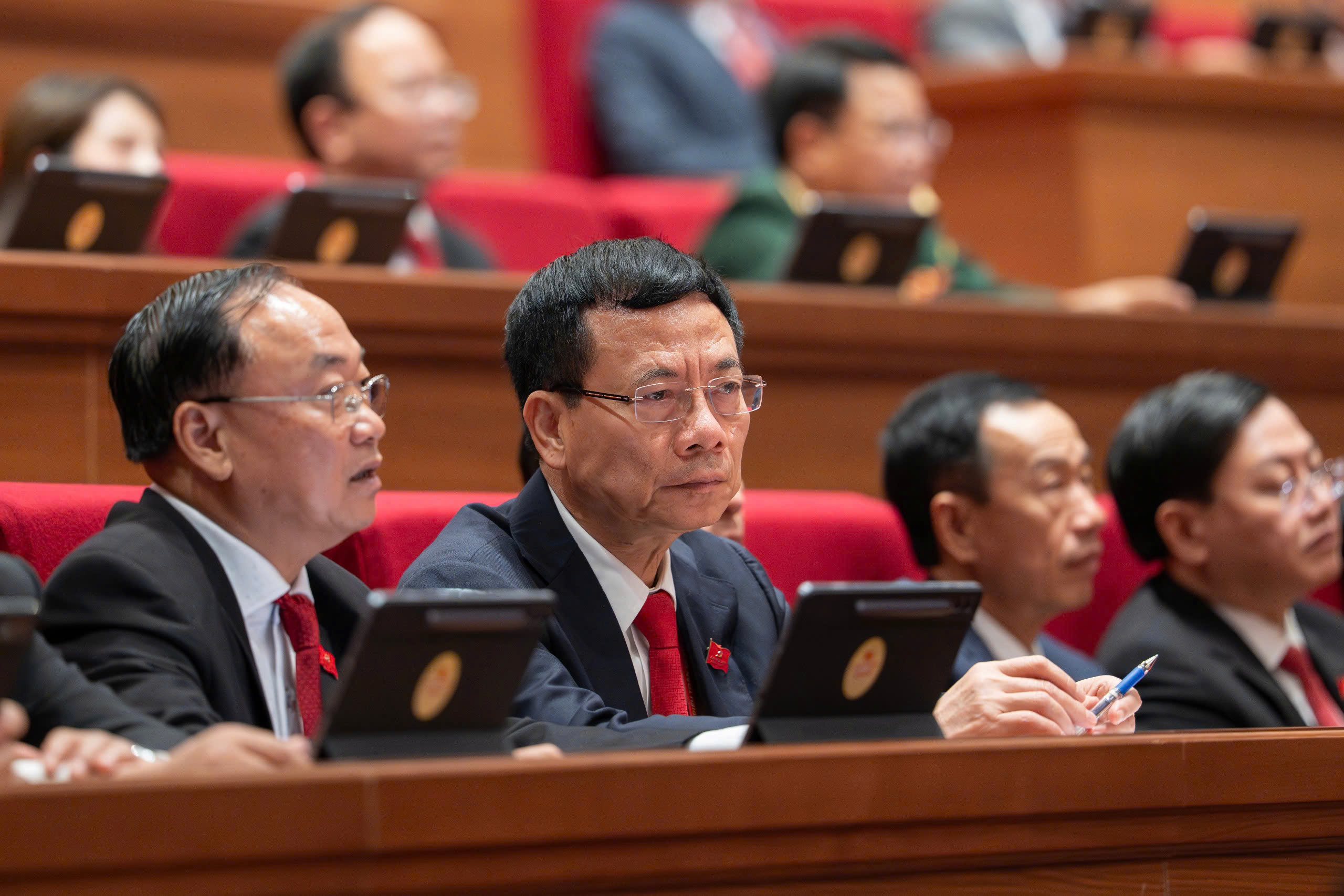 The Presidium of the Congress included Politburo members: General Secretary To Lam; State President Luong Cuong; Prime Minister Pham Minh Chinh; National Assembly Chairman Tran Thanh Man; Permanent member of the Secretariat Tran Cam Tu; President of the Central Committee of the Vietnam Fatherland Front Bui Thi Minh Hoai; Permanent Deputy Prime Minister Nguyen Hoa Binh; Head of the Central Organizing Commission Le Minh Hung; Head of the Central Internal Affairs Commission Phan Dinh Trac; General, Minister of National Defense Phan Van Giang; General, Minister of Public Security Luong Tam Quang; Director of the Ho Chi Minh National Academy of Politics, Chairman of the Central Theoretical Council Nguyen Xuan Thang; Secretary of the Hanoi Party Committee Nguyen Duy Ngoc; General, Head of the General Political Department of the Vietnam People's Army Nguyen Trong Nghia; Permanent Vice Chairman of the National Assembly Do Van Chien; and Permanent member of the XIV Congress Document Subcommittee Nguyen Van Nen. |
