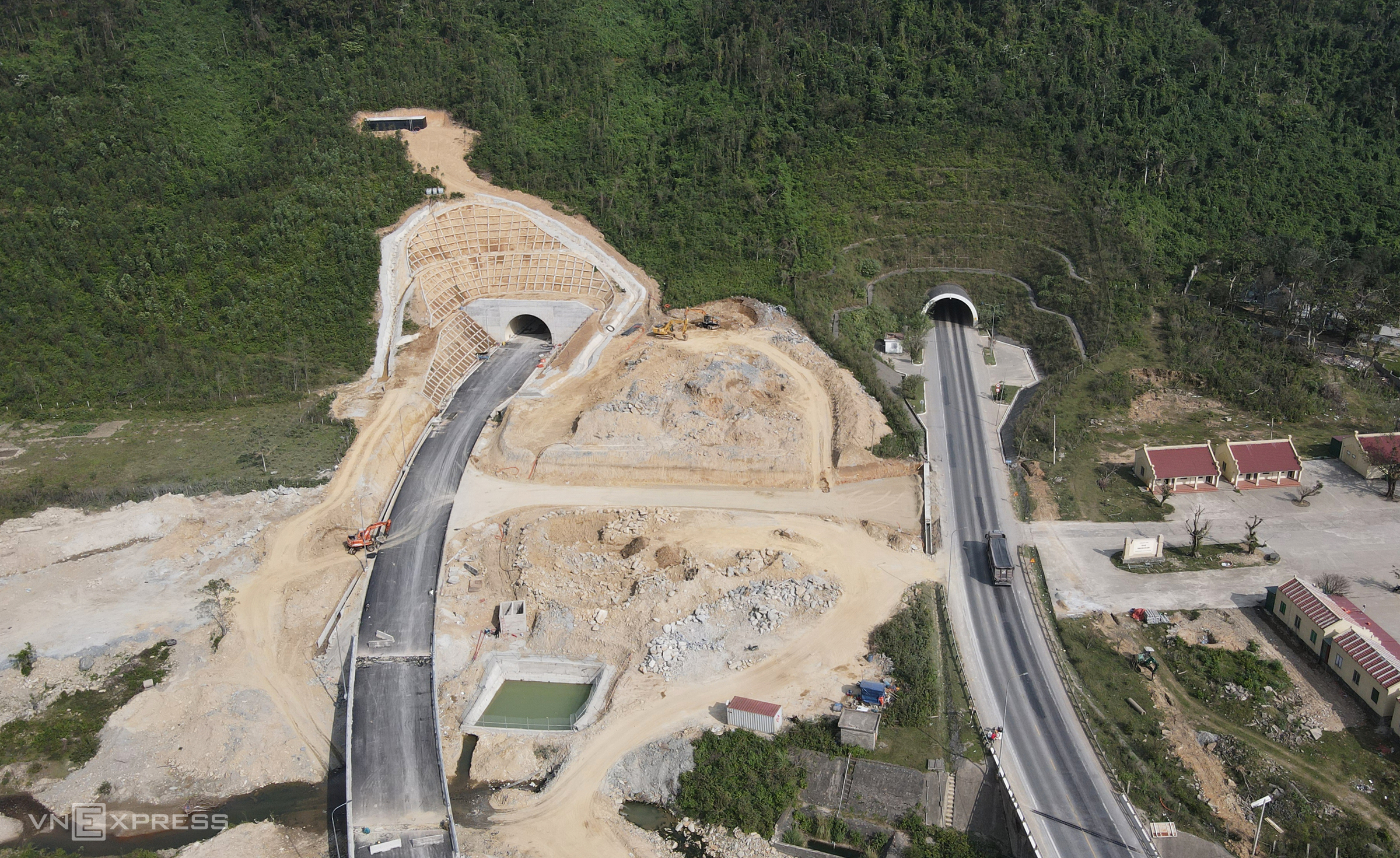 The new tunnel runs parallel to the left of the old tunnel, in the south-north direction, constructed by Song Da 10. |