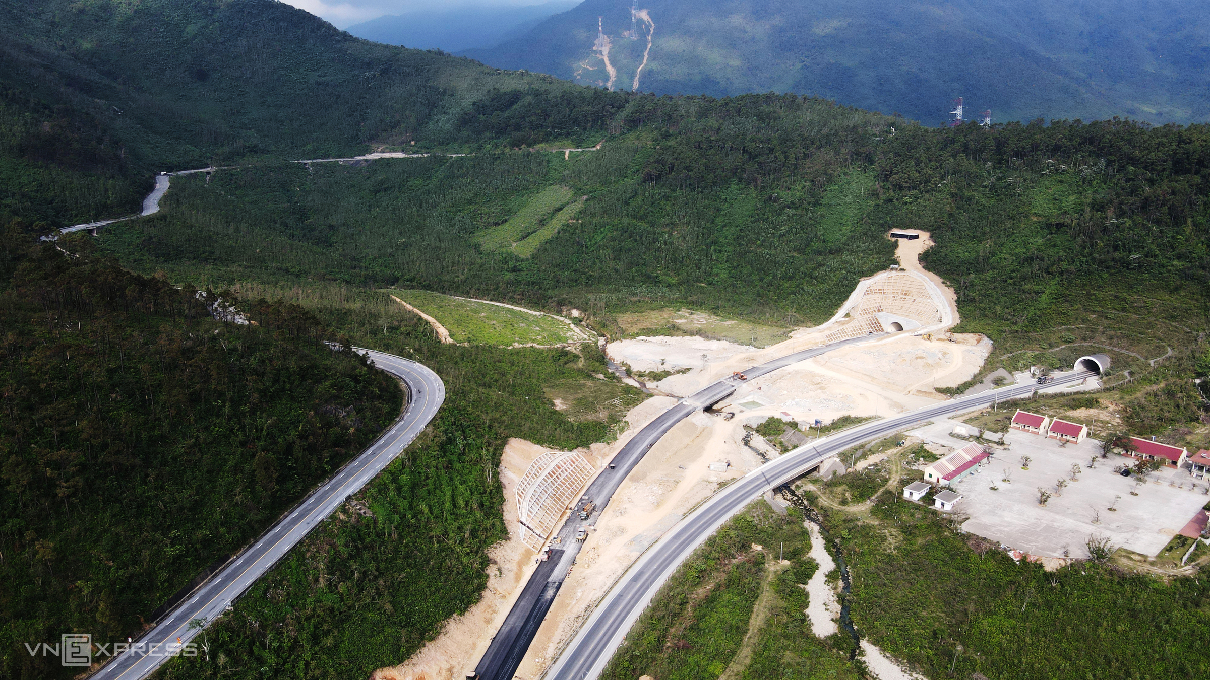 From right to left: the old tunnel, the new tunnel, and the road over Deo Ngang. Before the tunnel, crossing the Hoanh Son mountain range by road required navigating the winding 6 km Deo Ngang Pass.