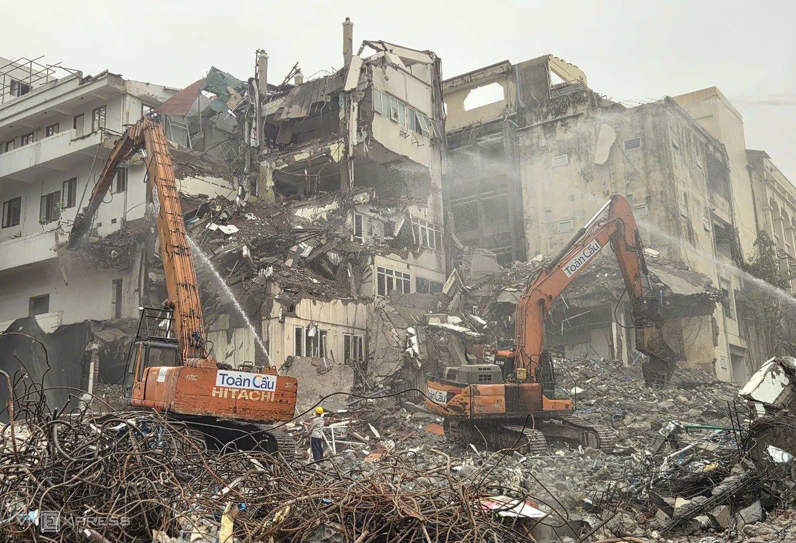 Construction unit demolishing structures to build the East Ho Guom Square. Photo: Vo Hai |