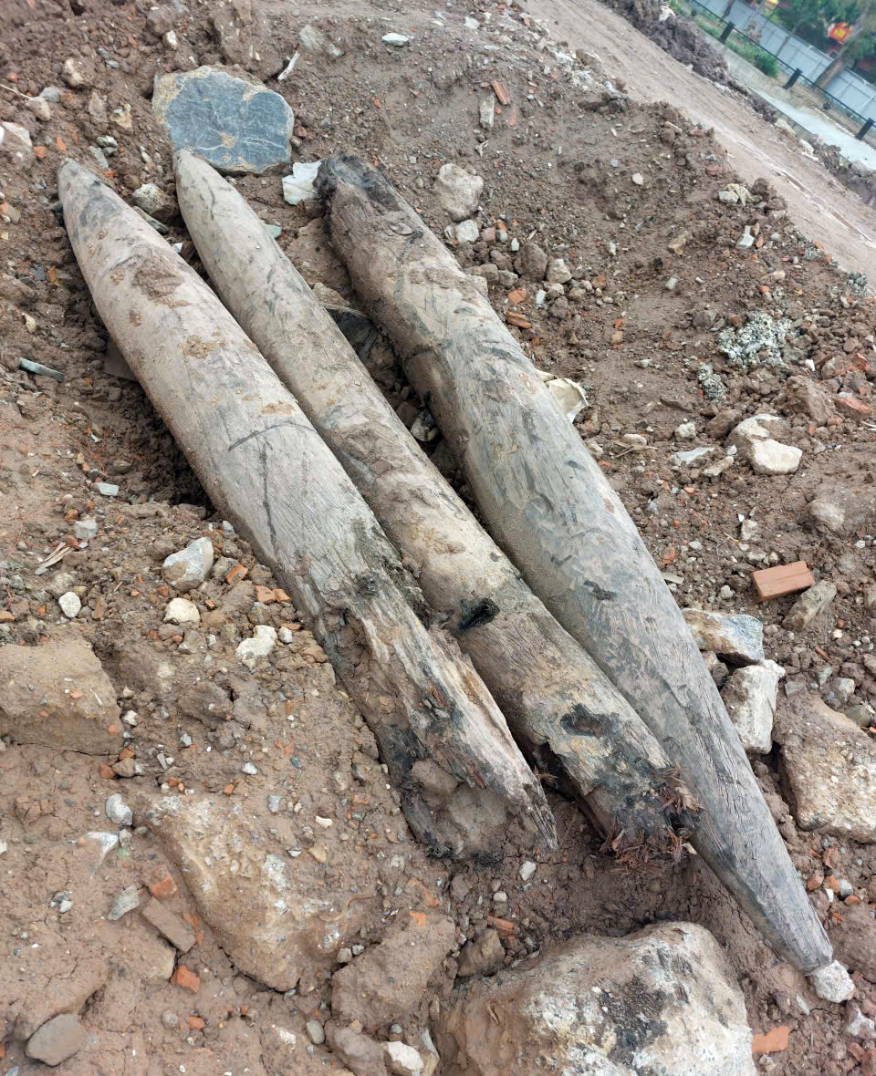 According to the Ninh Binh Provincial Museum, on 15/4, workers operating an excavator to dredge the right bank of the Van River, approximately 30 meters north of Cha La Bridge, discovered three large wooden stakes emerging from the sedimentary mud. The construction unit subsequently removed the stakes using the excavator before reporting the find to authorities.