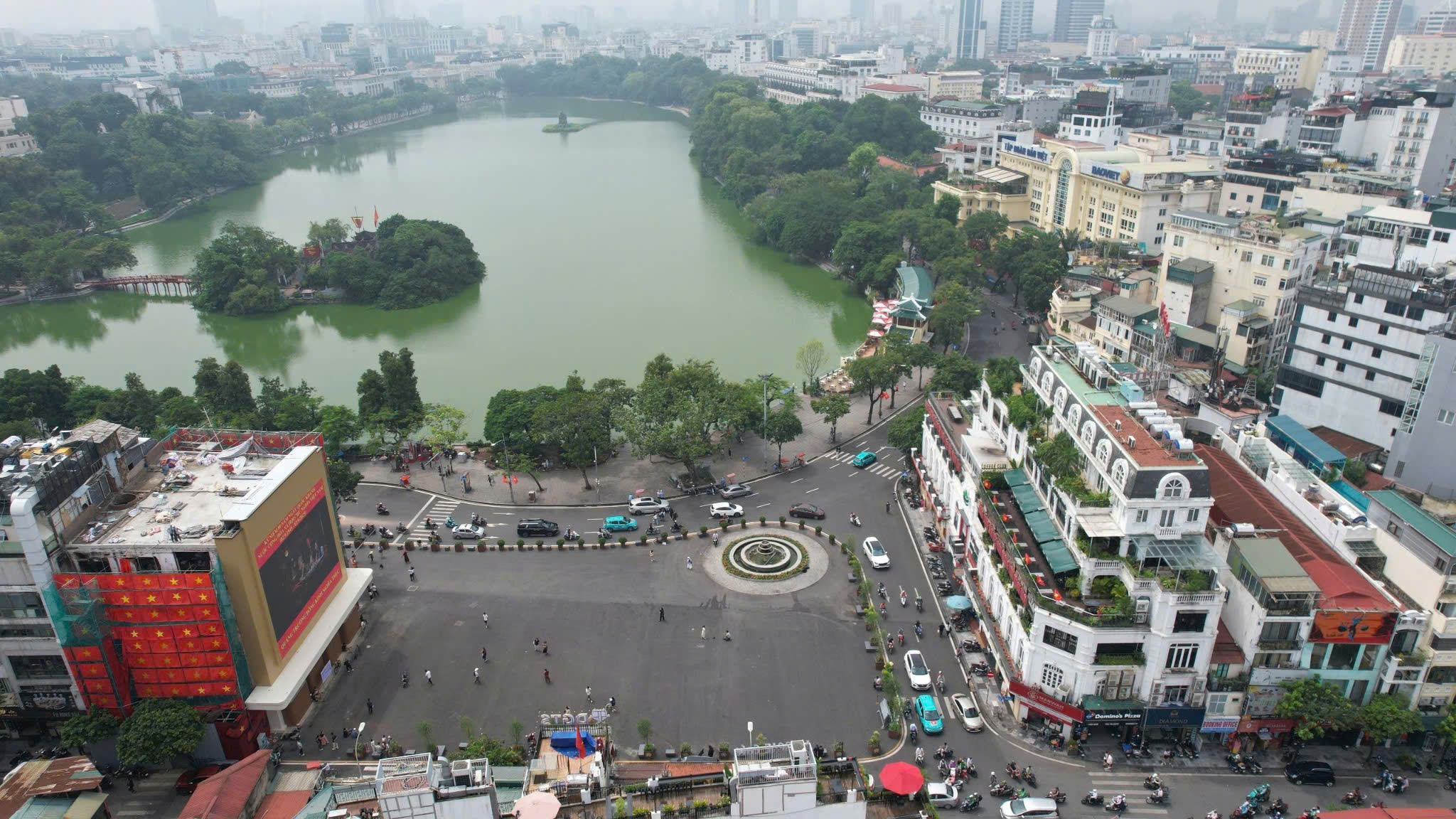 The 12-hectare Hoan Kiem lake, surrounded by Dinh Tien Hoang, Hang Khay, and Le Thai To streets, is a hub for various agencies, businesses, historical sites, and scenic spots, including the Hoan Kiem - Ngoc Son special national relic site and the Ba Kieu temple national relic.