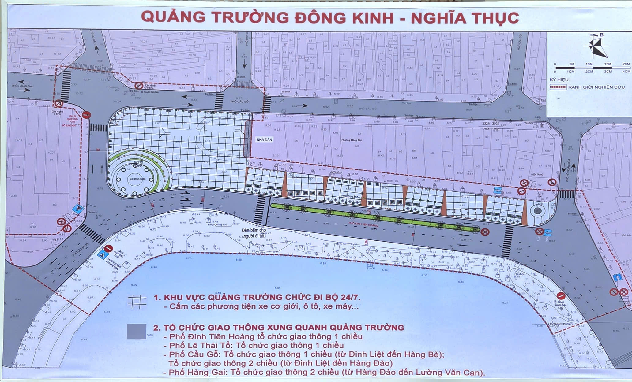The proposed traffic plan for the square area is on display under the LED screen. Photo: Vo Hai |