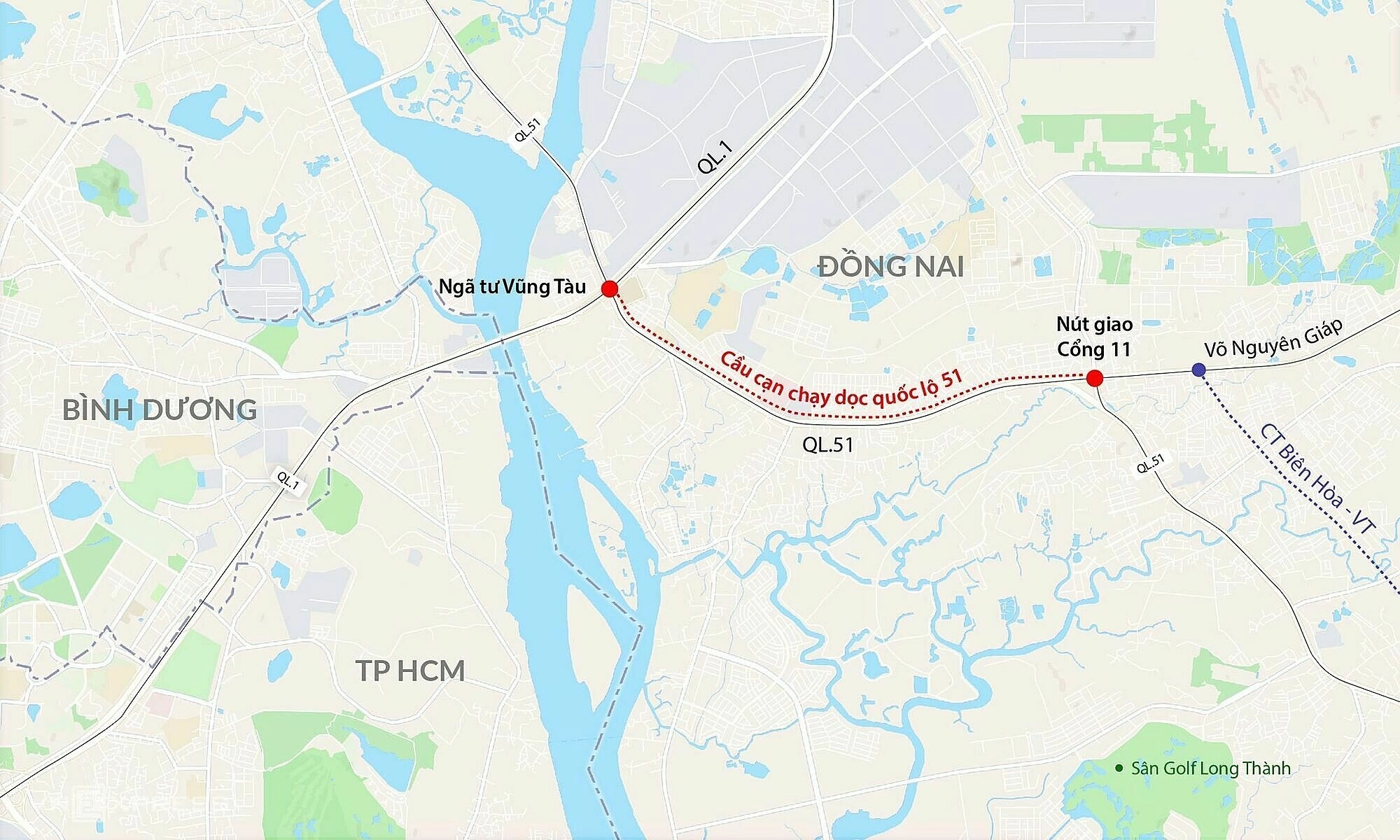 The project spans approximately 6,2 km, featuring a 4,6 km viaduct. Designed for a speed of 80 km/h, the route will traverse Tran Bien, Long Hung, Phuoc Tan, and Long Binh wards. Its starting point is Le Van Duyet street in Tran Bien, concluding at Vo Nguyen Giap street in Phuoc Tan.