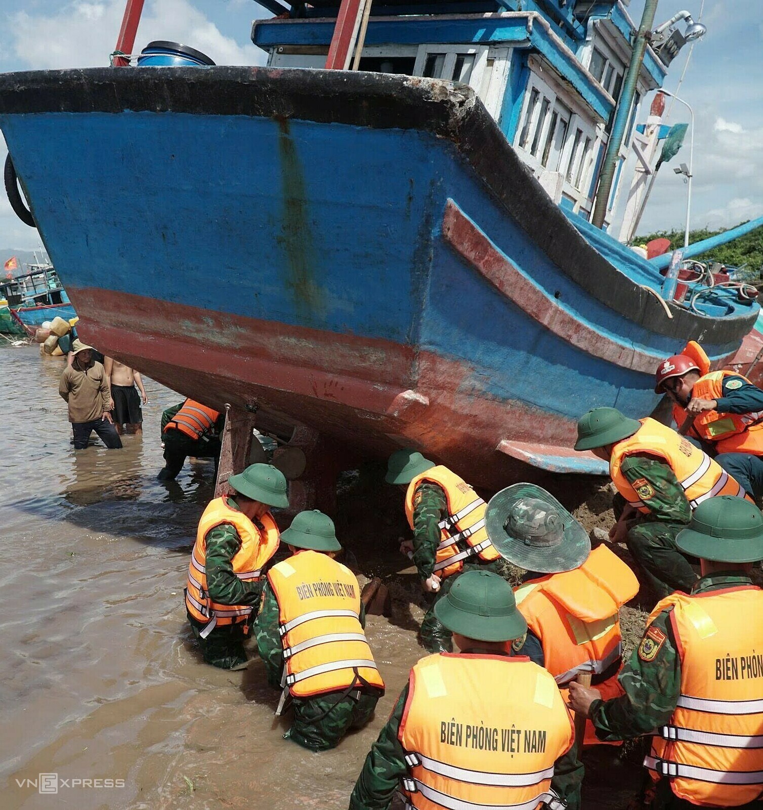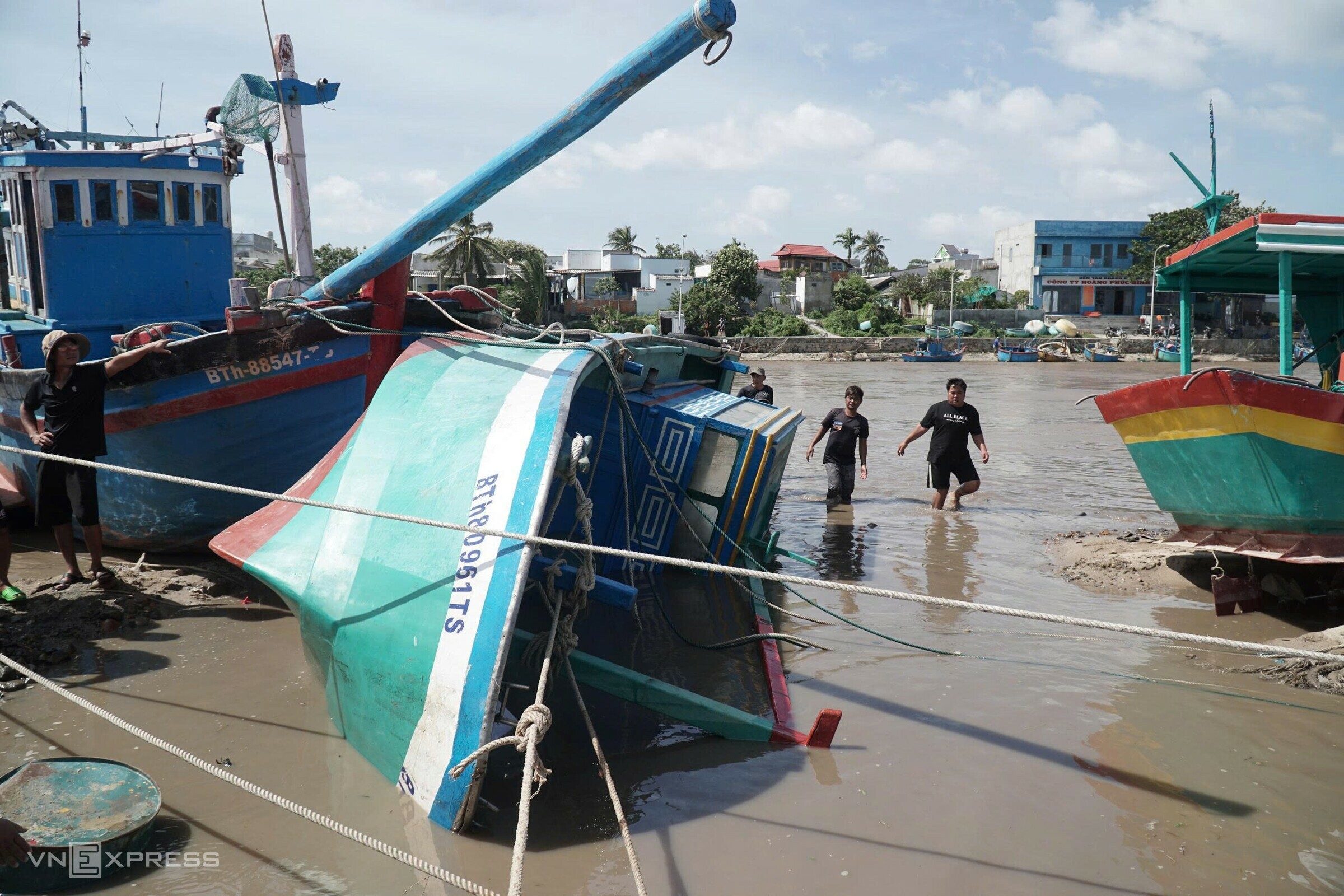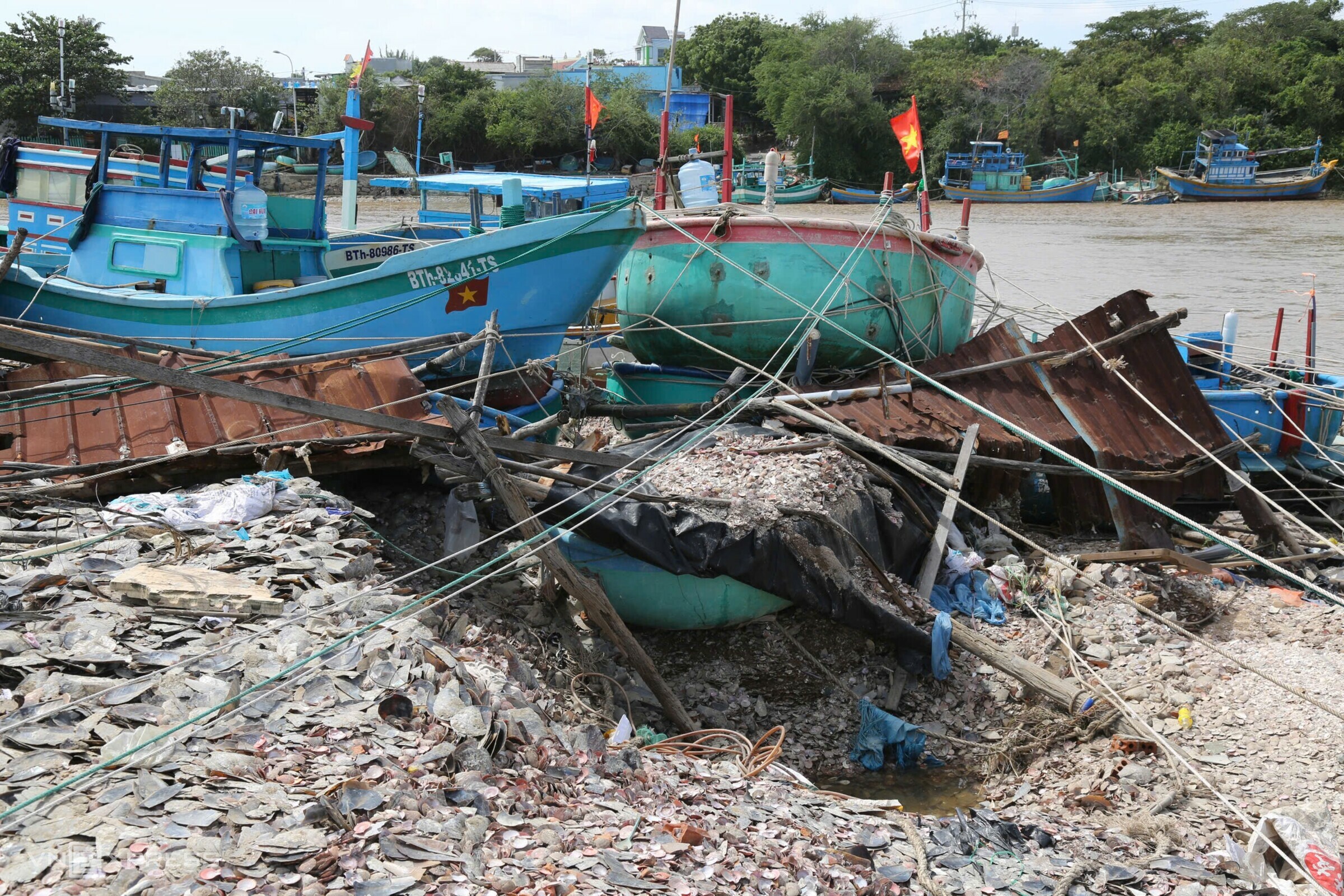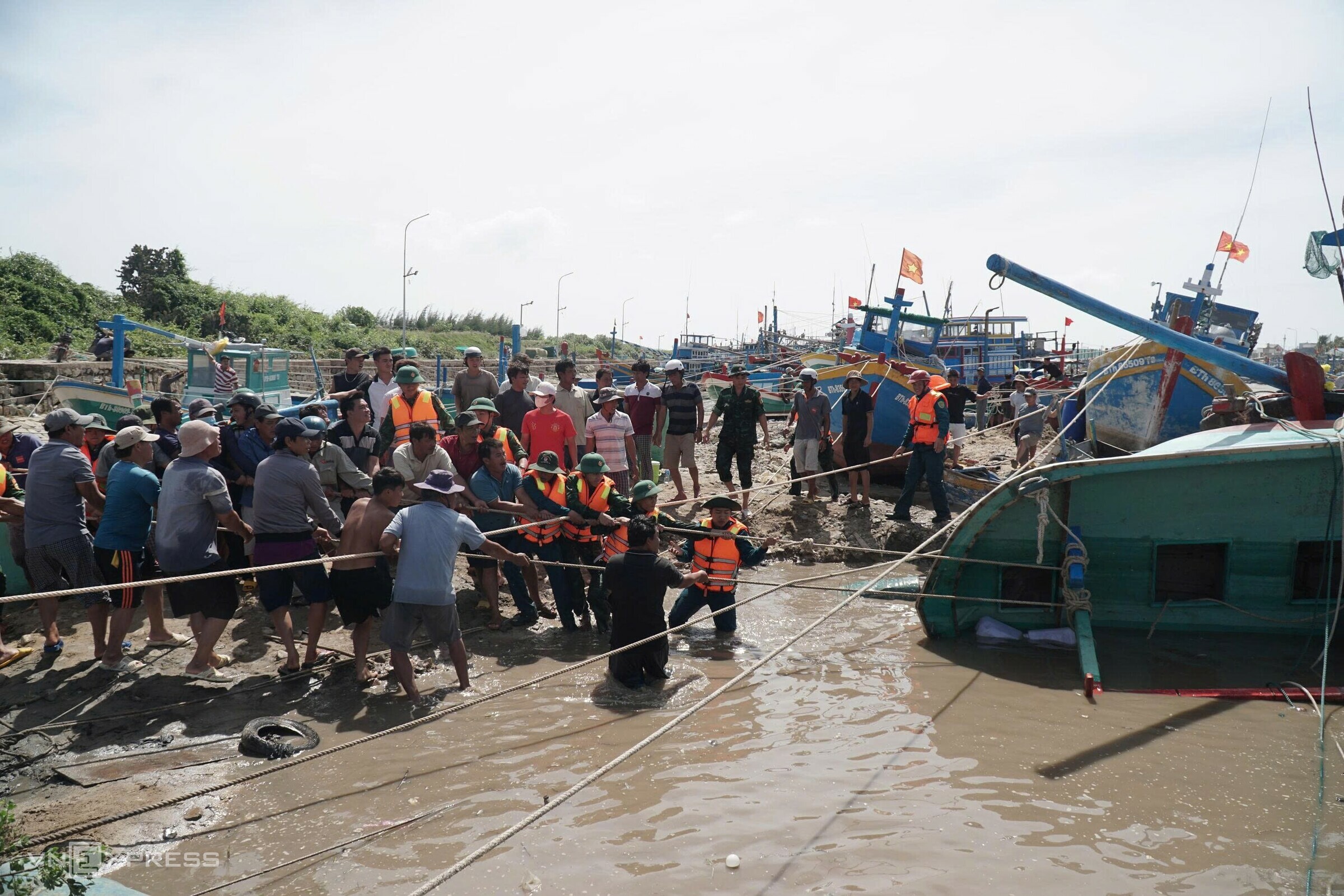 According to the Lien Huong People's Committee, the commune has over 24 boats sunk, 30 boats that broke anchor and drifted out to sea, and many boats damaged by collisions.