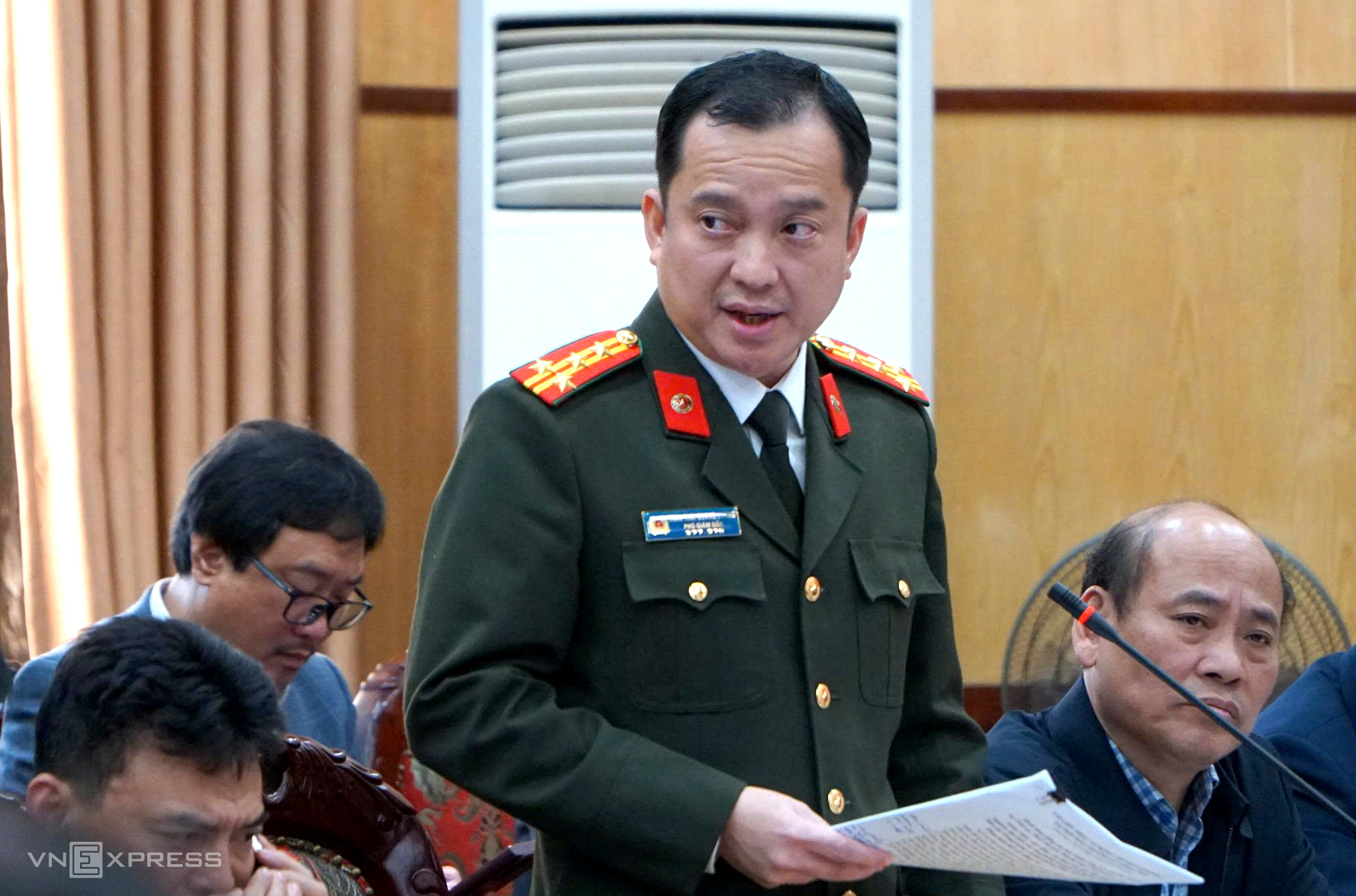 Colonel Tran Thai Quang Hoang, deputy director of Thanh Hoa provincial police, provides information about the accident at the press conference on the afternoon of 15/1. Photo: Le Hoang