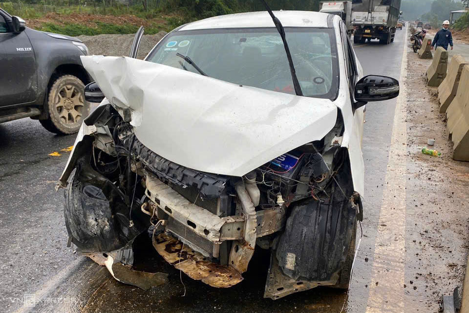 The front of the car was severely damaged. Photo: Nhat Hoang |