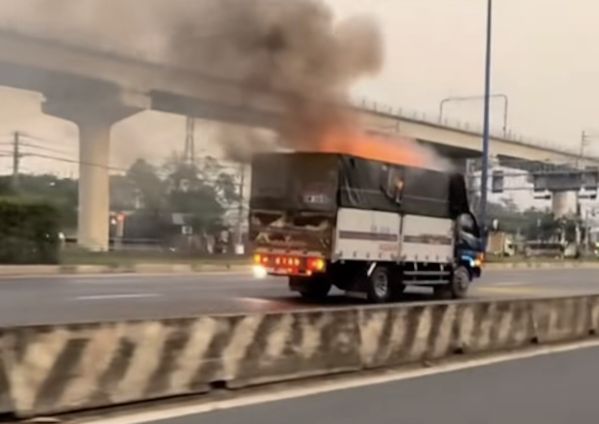 On the morning of 20/12, a male driver was operating a 5-ton truck carrying electronic waste and laptop batteries on Vo Nguyen Giap street, heading from Sai Gon bridge towards Dong Nai. Upon reaching the Binh Thai intersection in Thu Duc City, the driver discovered smoke and fire erupting from the truck's cargo, accompanied by explosions.