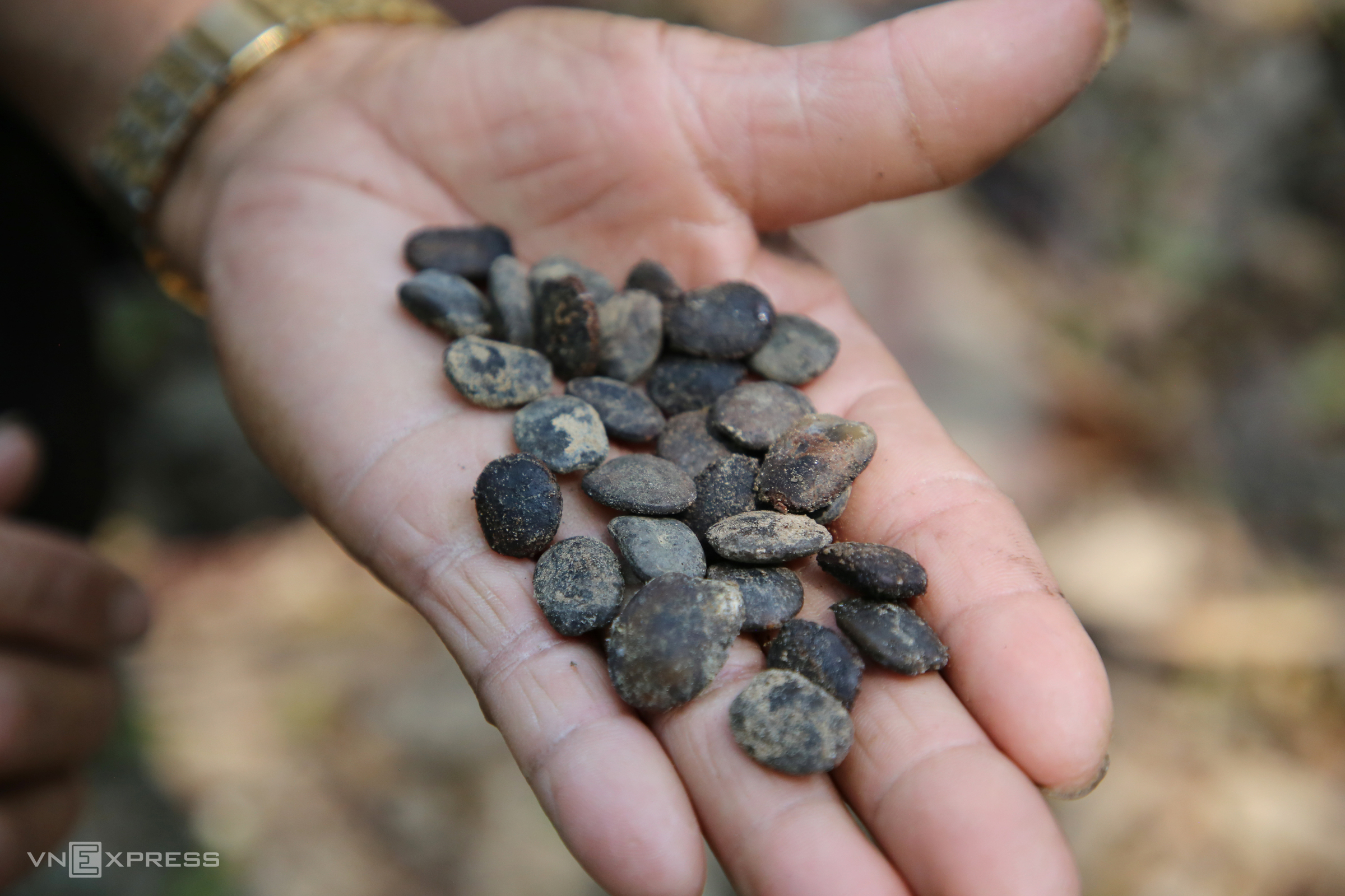 Ironwood seeds that fall to the ground are collected by Mr. Do and his grandchild, then sown in empty spaces to promote natural regeneration. He has 13 children and many grandchildren, several of whom help him care for the forest.