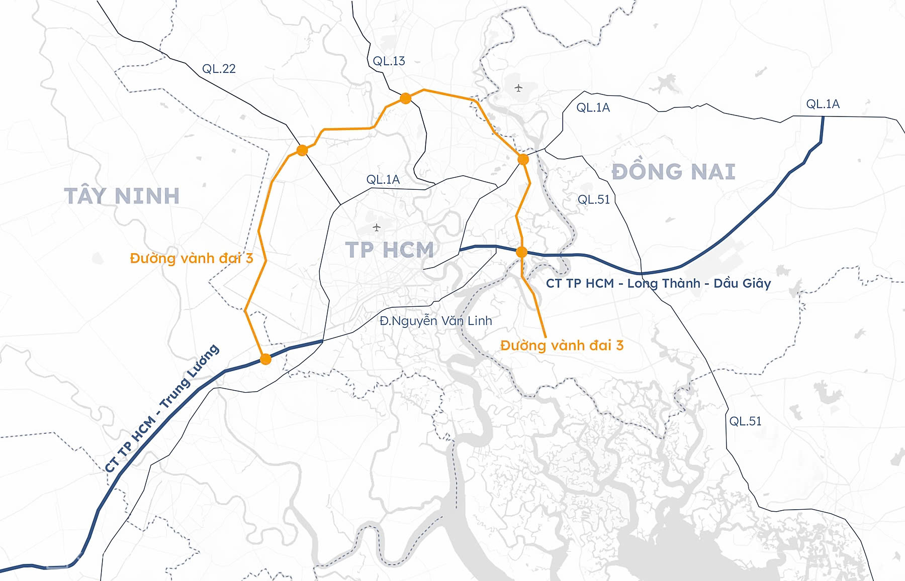 Ring Road 3 spans over 90 km, serving as an inter-regional route connecting TP HCM, Dong Nai, and Tay Ninh. Upon completion, the entire route will not only improve traffic connectivity but also establish an urban and industrial corridor, impacting not only the four provinces and cities it passes through but also the entire Southern key economic region.