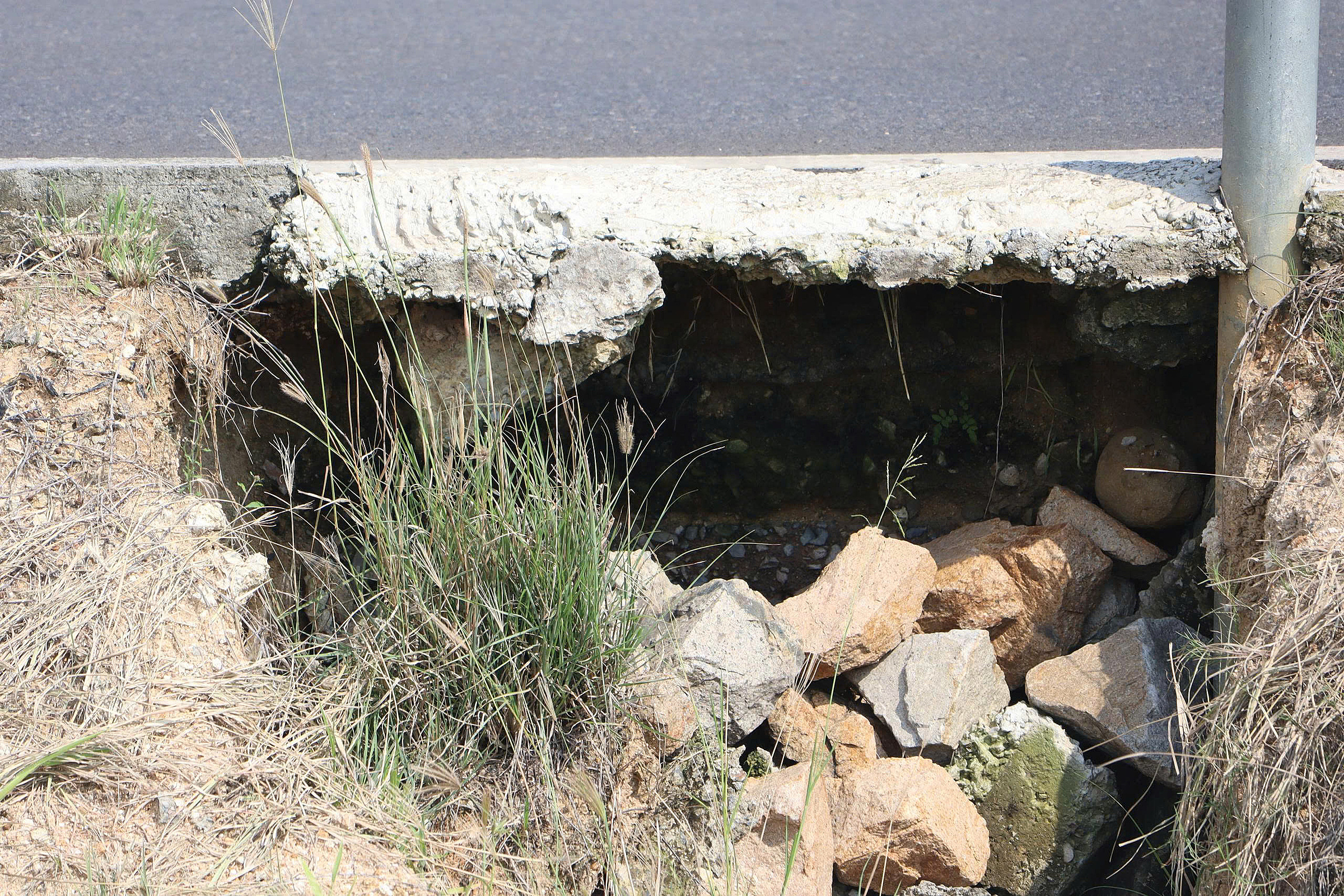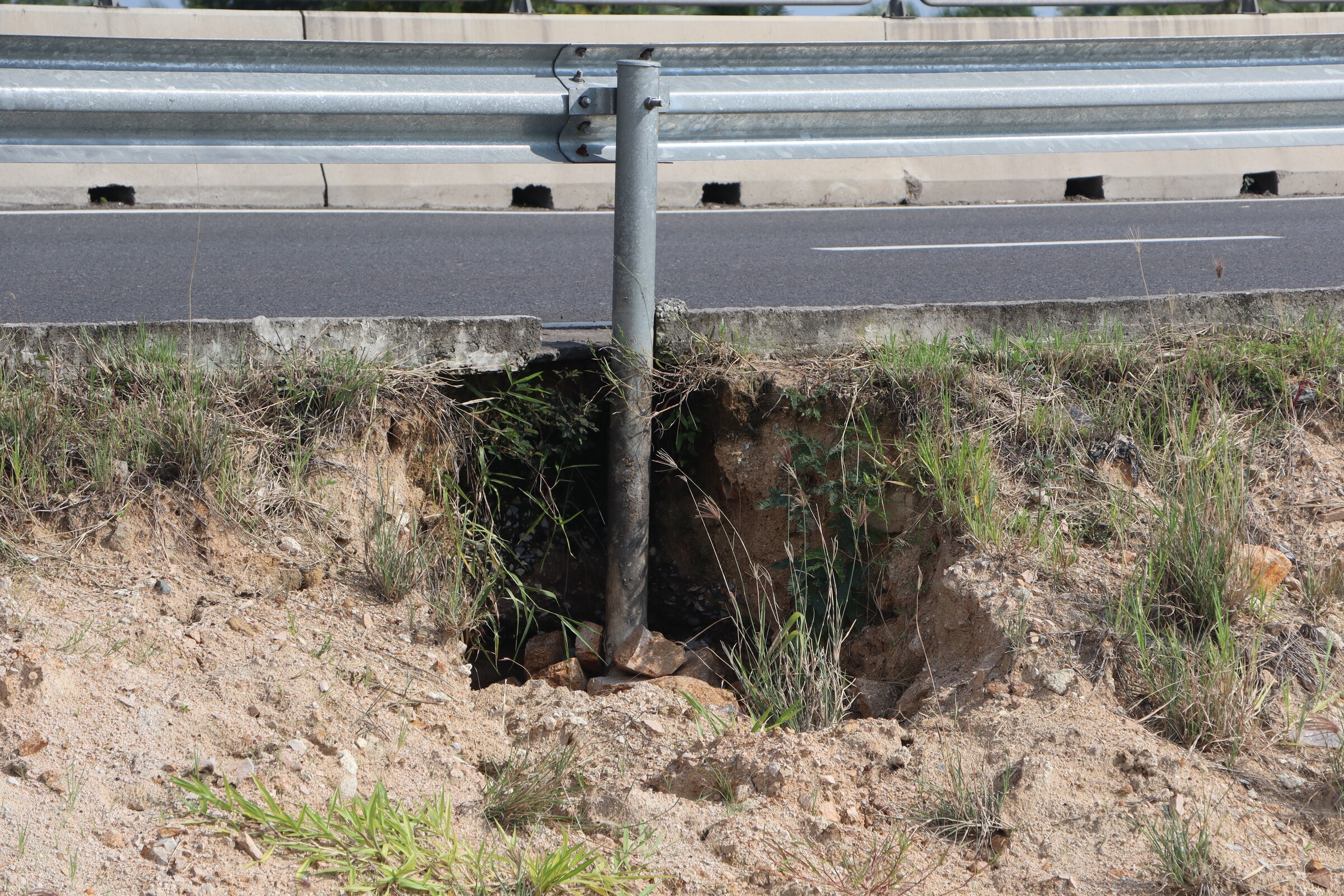 Another erosion hole has appeared near a guardrail post. In addition, more than 10 new erosion spots have formed along the route, threatening to spread and further impact the expressway.