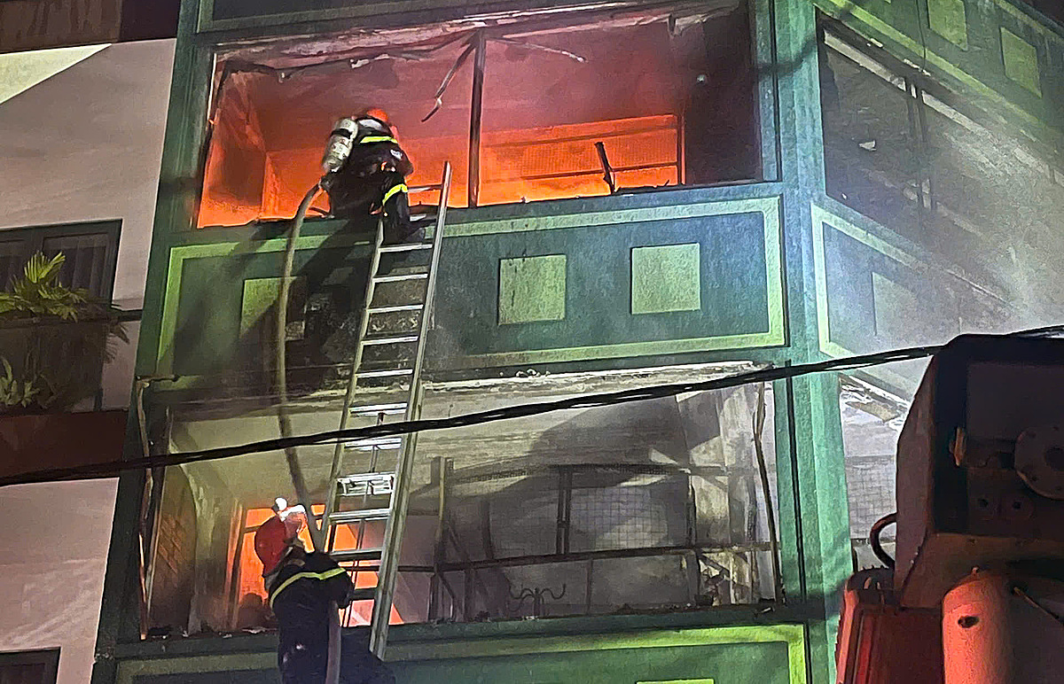 Firefighters used ladders to access the blaze from above to prevent it from spreading. Photo: Khanh Hoa Police |
