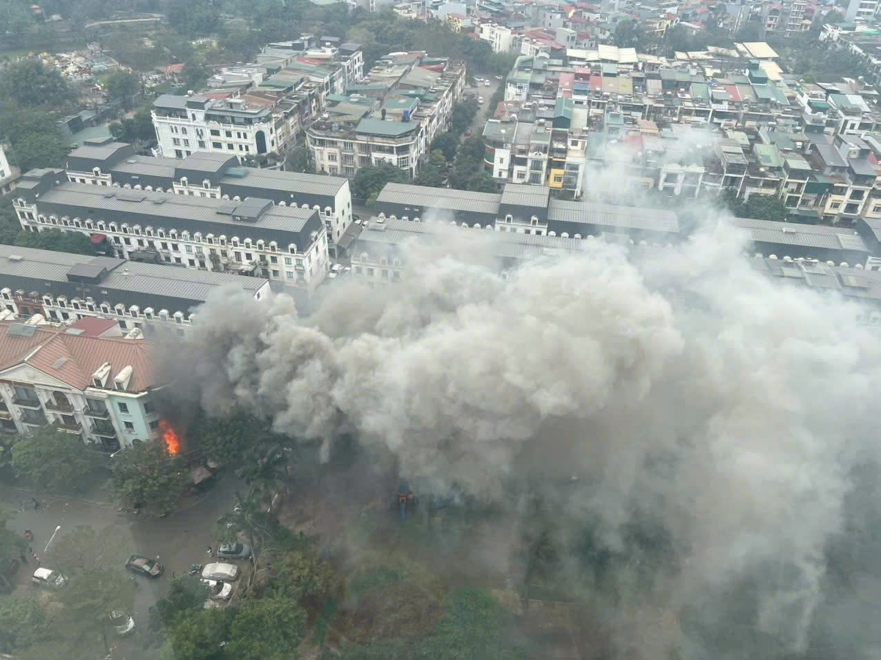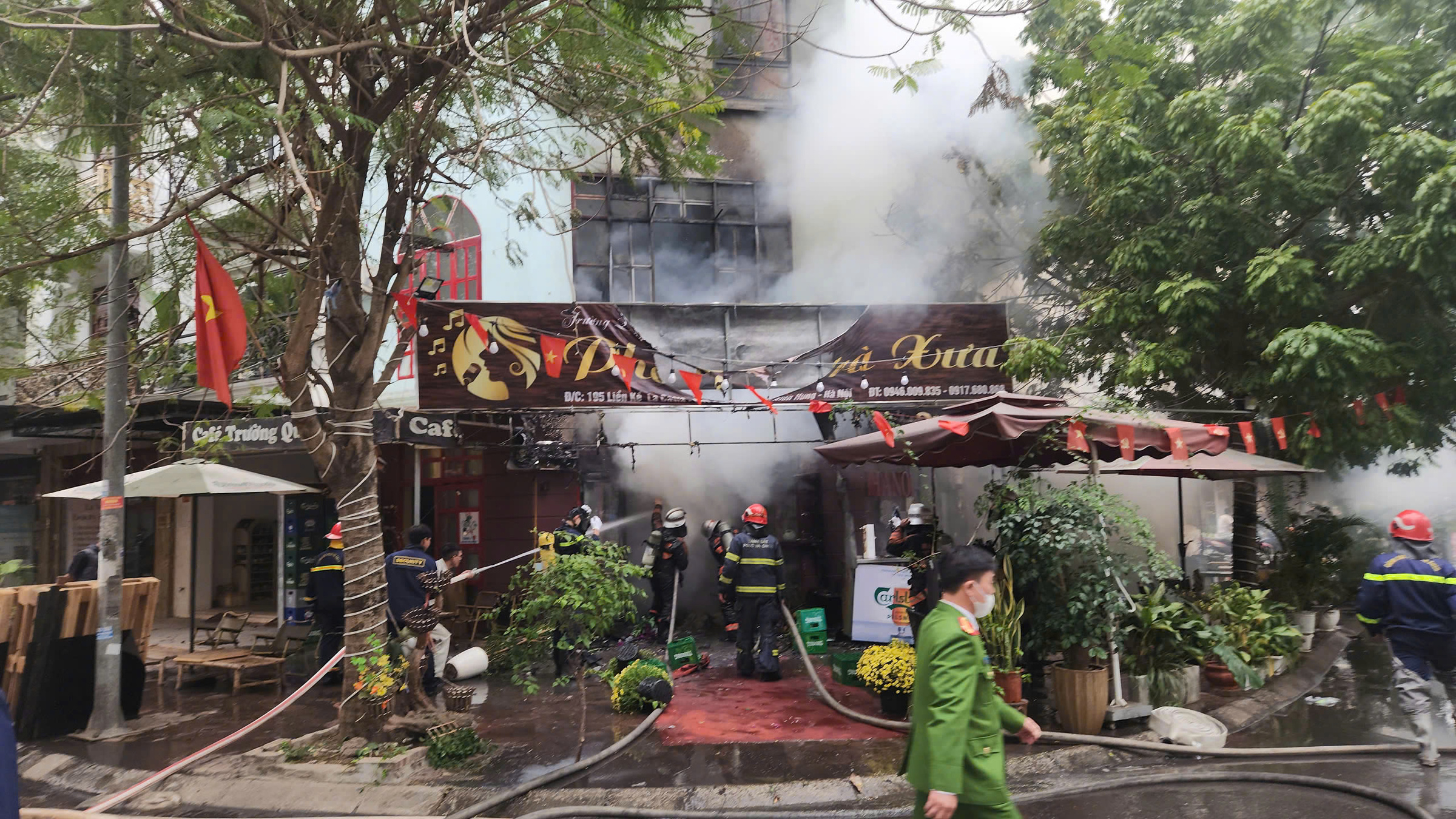 Around 10:45 a.m., a fire broke out on the first floor of a four-story coffee shop located at 195 La Casta, Van Phu urban area. The flames quickly spread, generating thick black smoke that affected the surrounding residential area.
