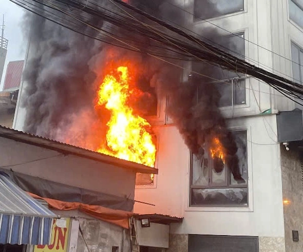 Around 6 p.m. on 24/3, a fire broke out on the second floor of house number 3, alley 218, Linh Nam street, Hoang Mai ward. Due to numerous flammable materials inside, the blaze rapidly spread, with flames and smoke billowing out through the windows.