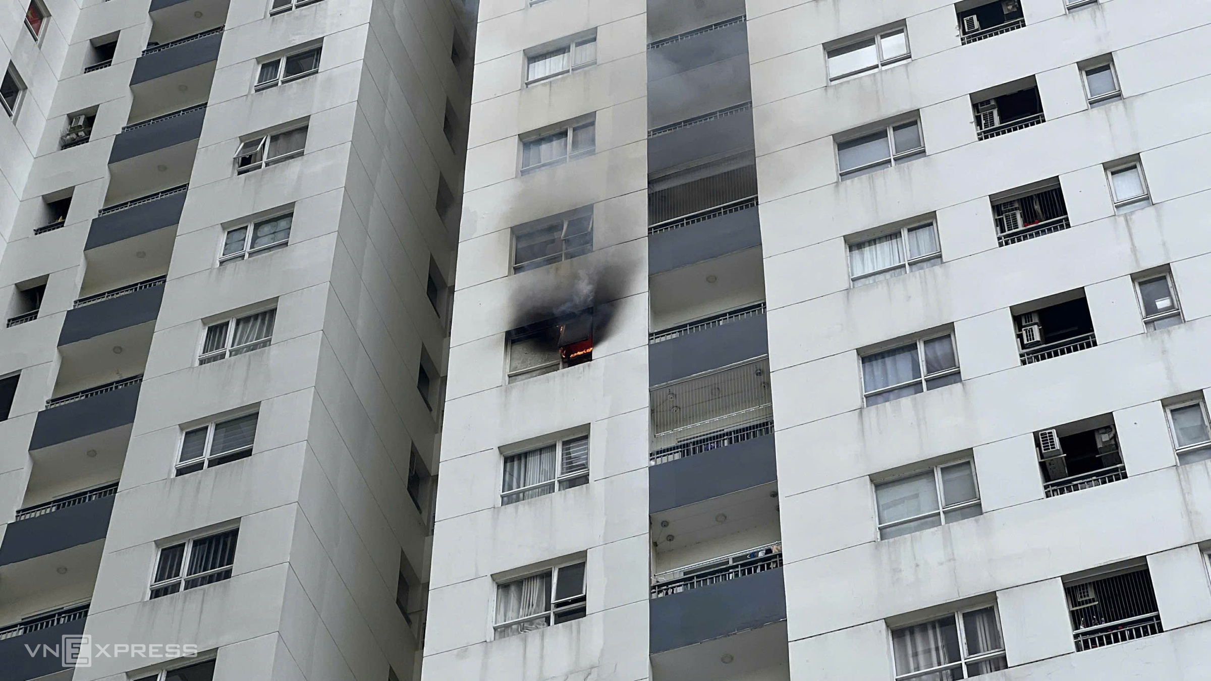 The apartment on the 12th floor of Dreamhome Plaza apartment building caught fire on the afternoon of 15/11. Photo: Minh Hoang |