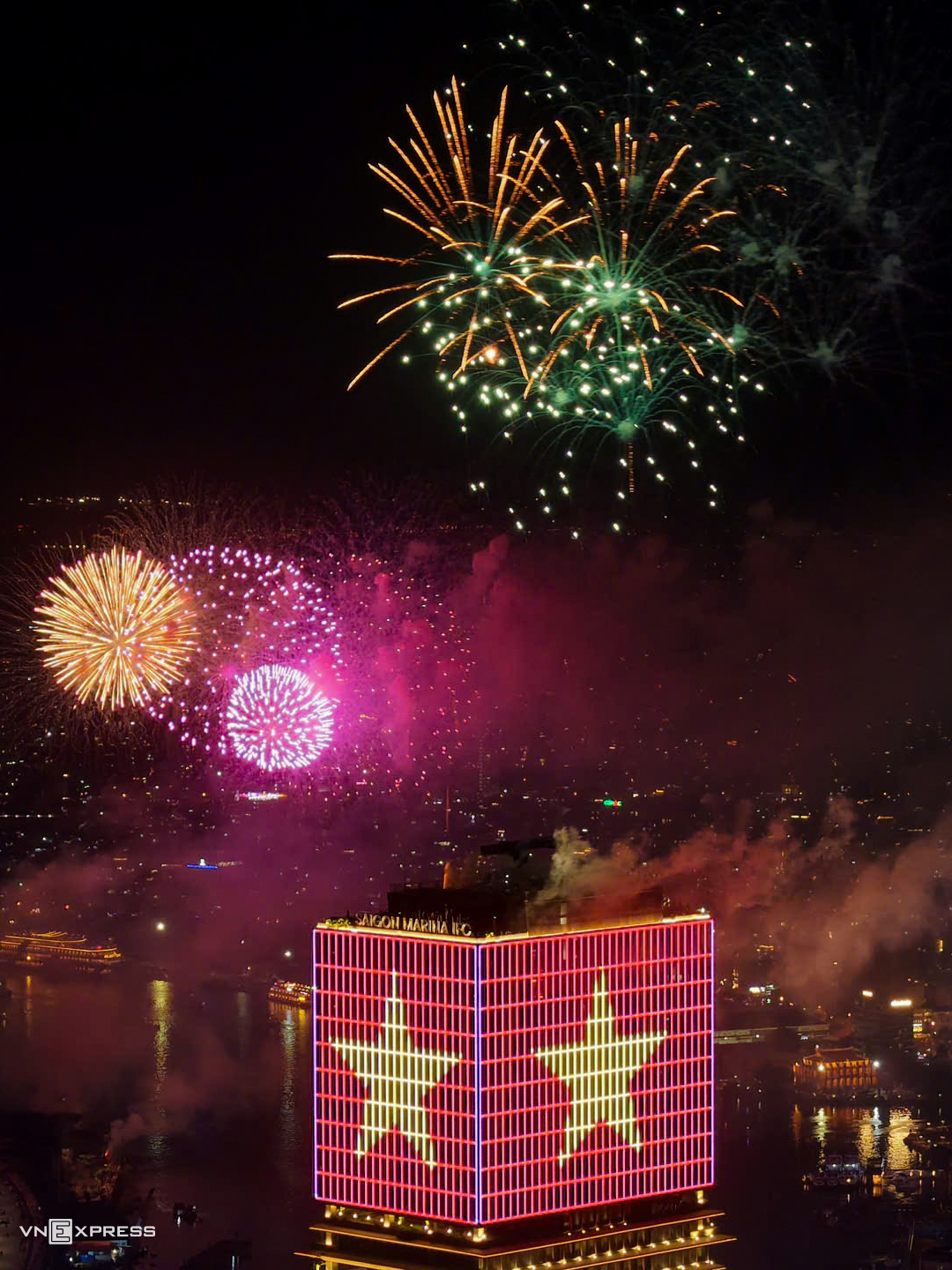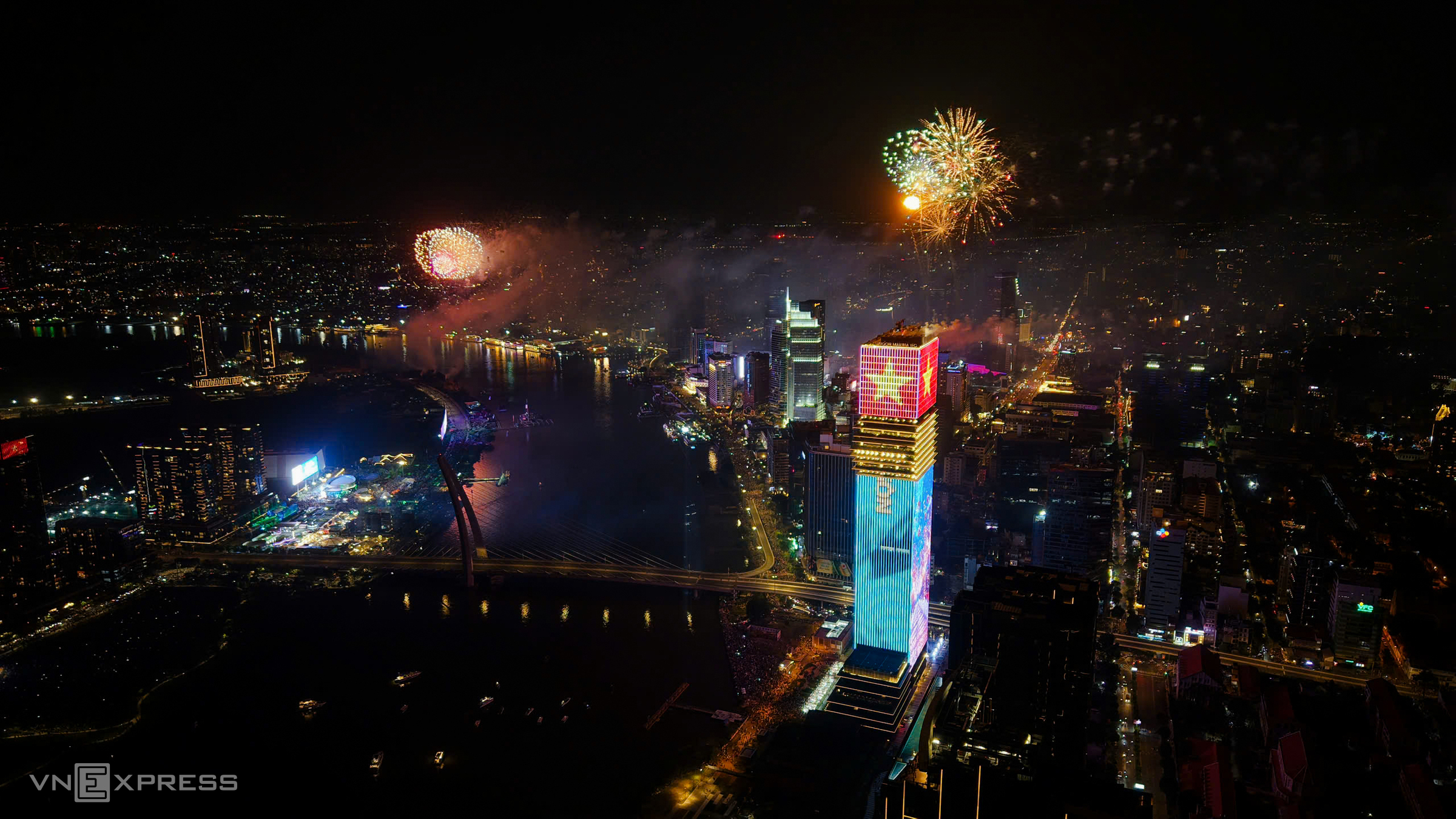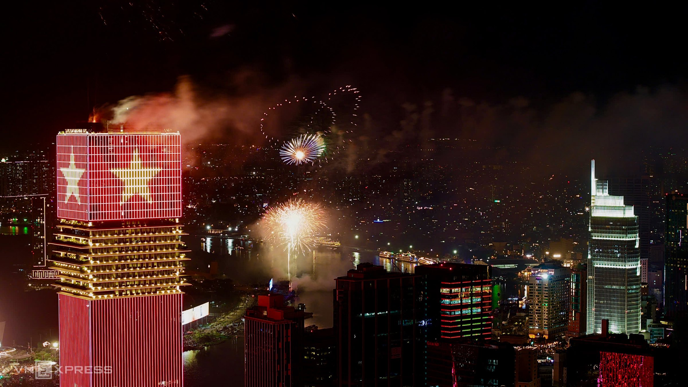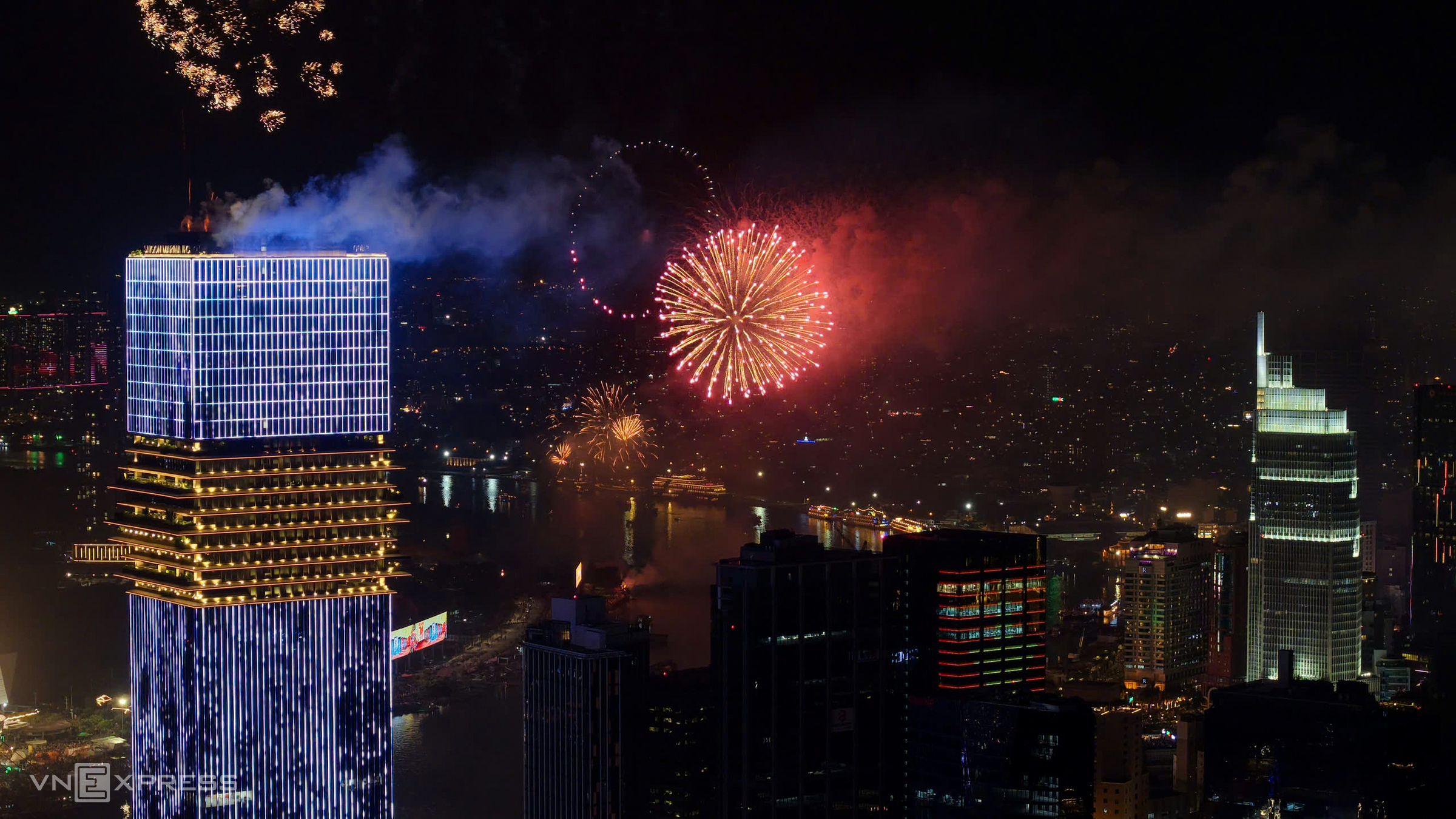 Waves of colorful fireworks lit up the Ho Chi Minh City sky.