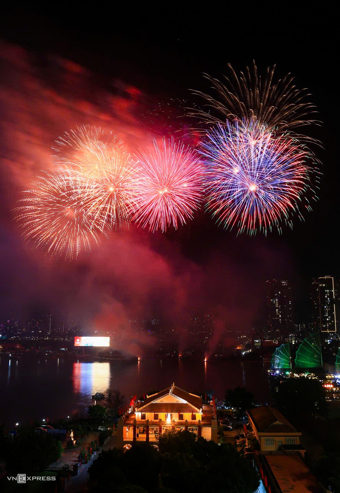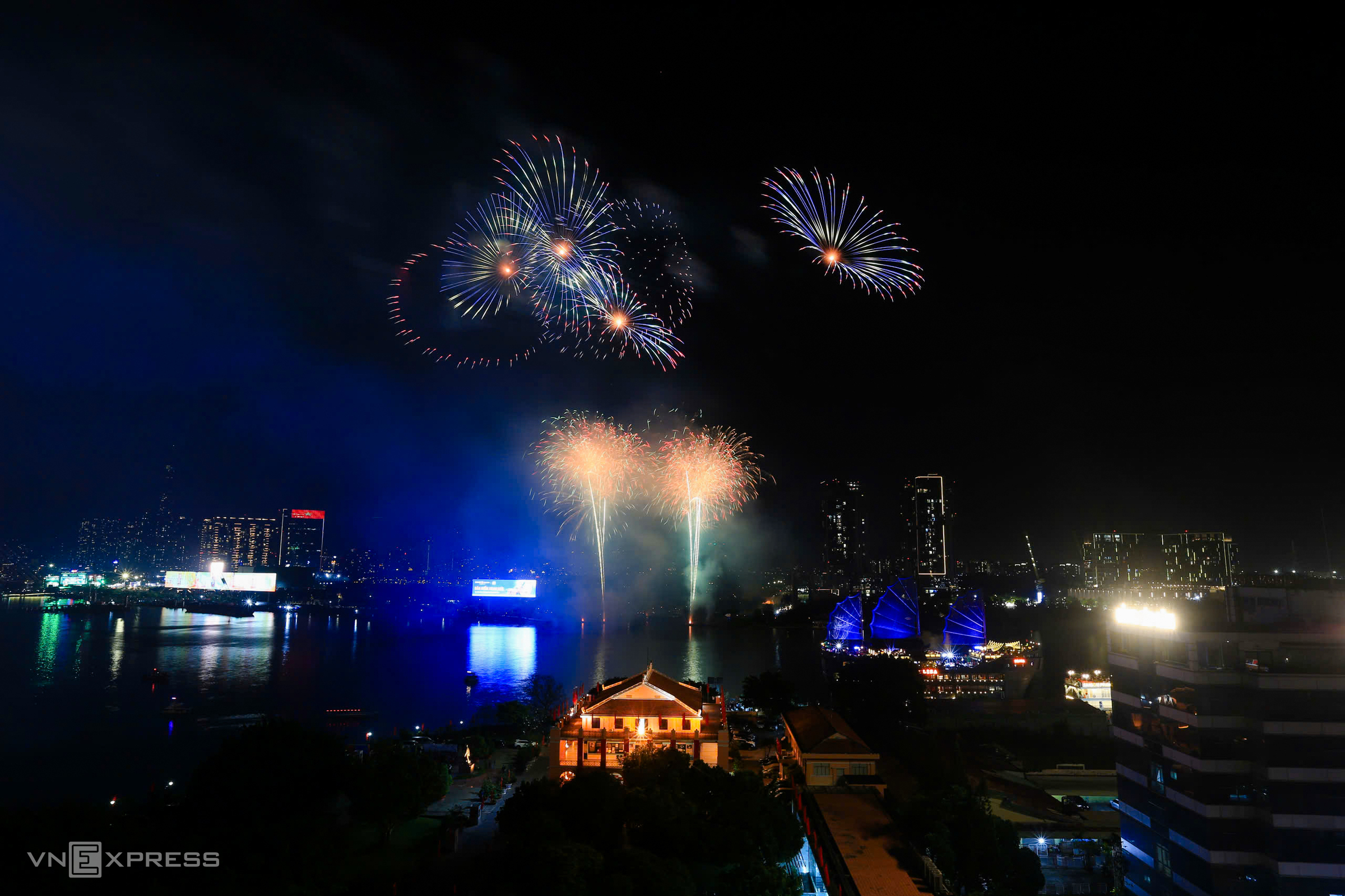 Fireworks illuminated a section of the Sai Gon River.
