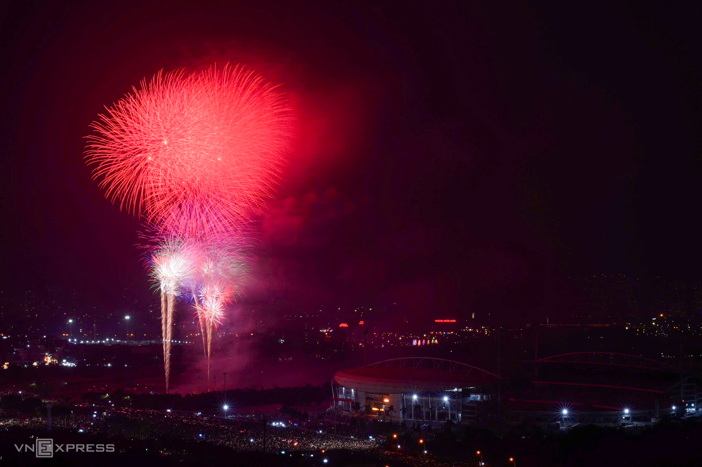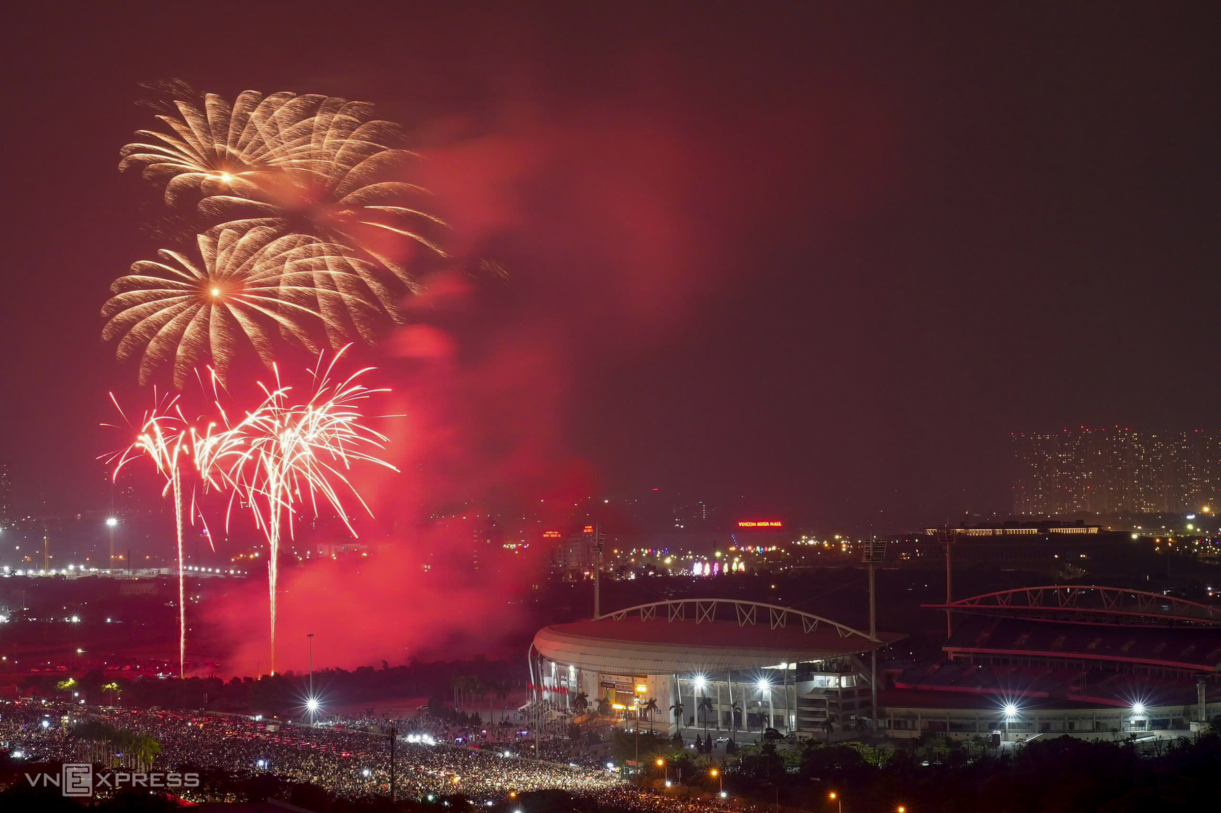 Fireworks erupted at 23h45 in the My Dinh National Stadium area, Tu Liem ward, Ha Noi.