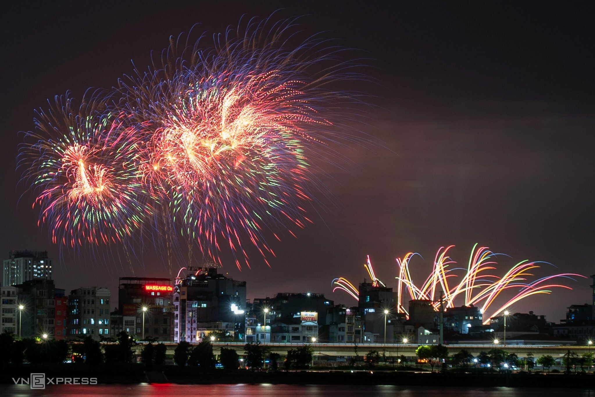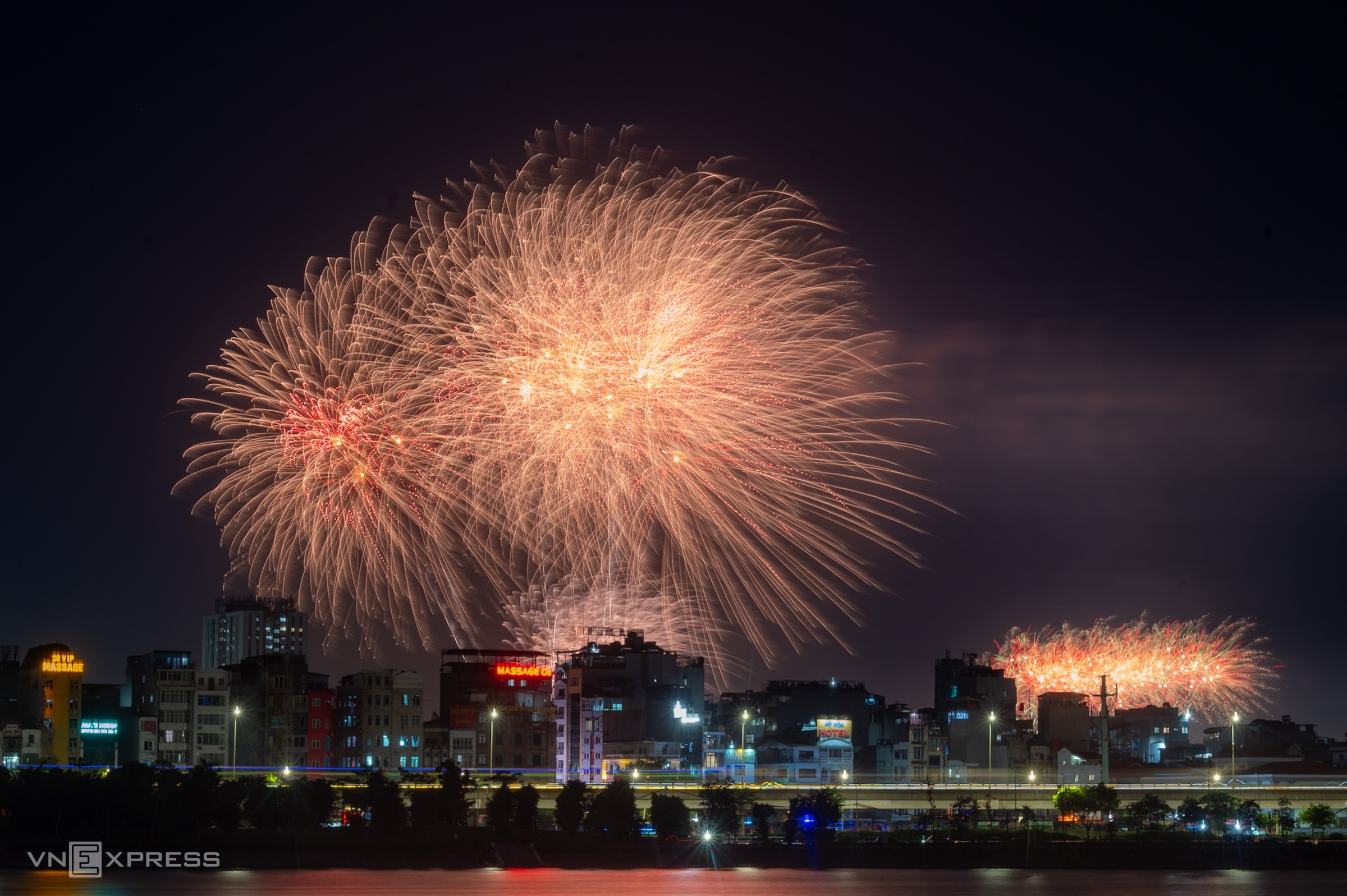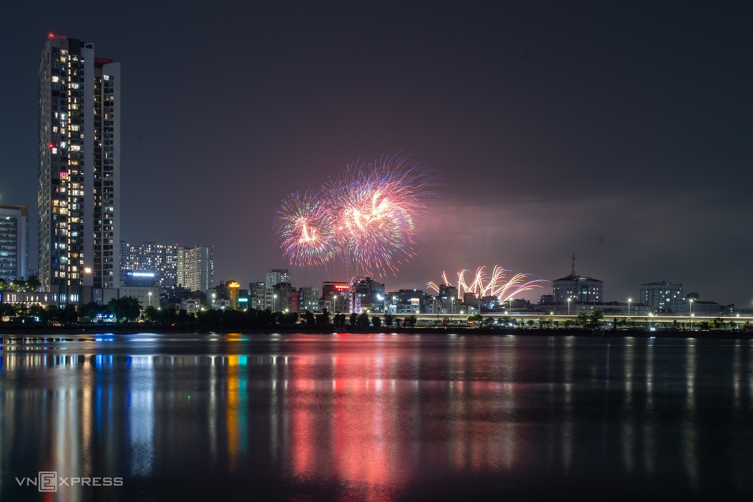 Compared to the fireworks display in 1/2026, the launch sites were expanded at the My Dinh National Stadium area and the F1 race track.
