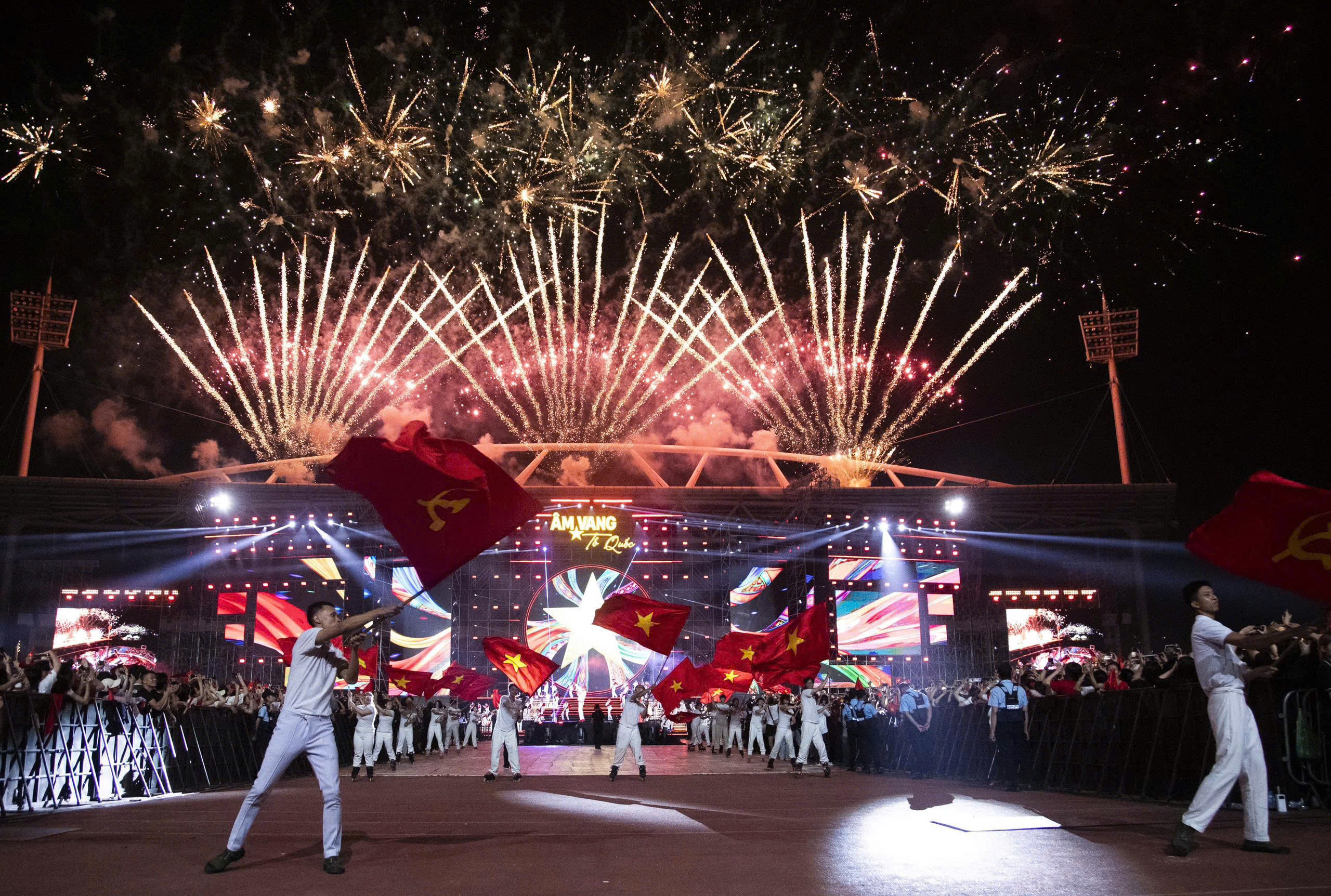 Hanoi witnessed a spectacular fireworks display on the evening of 28/4, with the first low-altitude fireworks launched at 20:10. This vibrant event marked the beginning of the "Echoes of the Fatherland" art program at My Dinh stadium. The display celebrated several significant anniversaries: the success of the elections for National Assembly deputies, Term XVI, and People's Council deputies at all levels for the 2026-2031 term; the 51st anniversary of the Liberation of the South and National Reunification (30/4/1975); the 140th anniversary of International Labor Day (1/5/1886); the 72nd anniversary of the Dien Bien Phu Victory (7/5/1954); the 136th anniversary of President Ho Chi Minh's birthday (19/5/1890); and the 67th anniversary of the opening of the Ho Chi Minh Trail – the traditional day of the Truong Son Corps (19/5/1959).